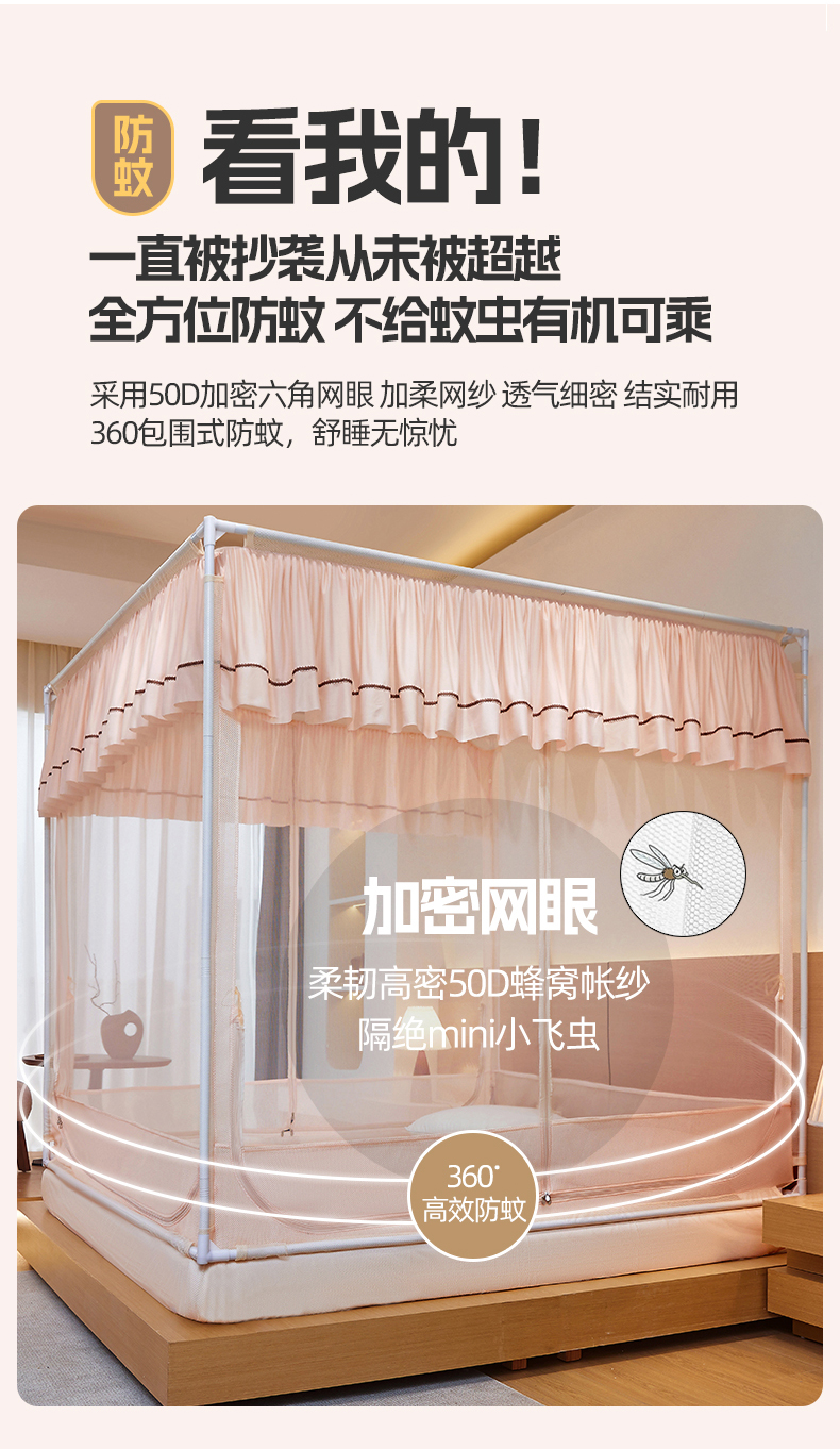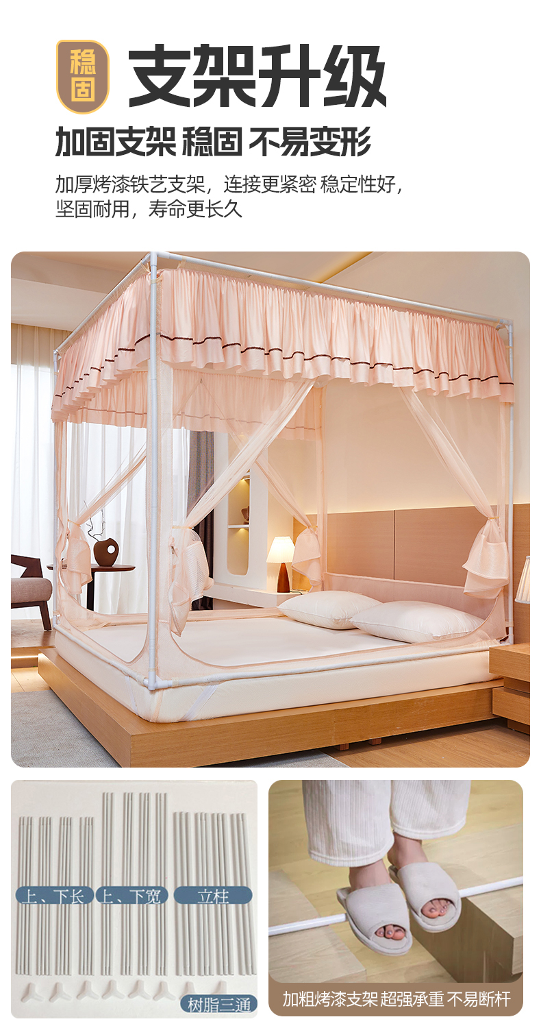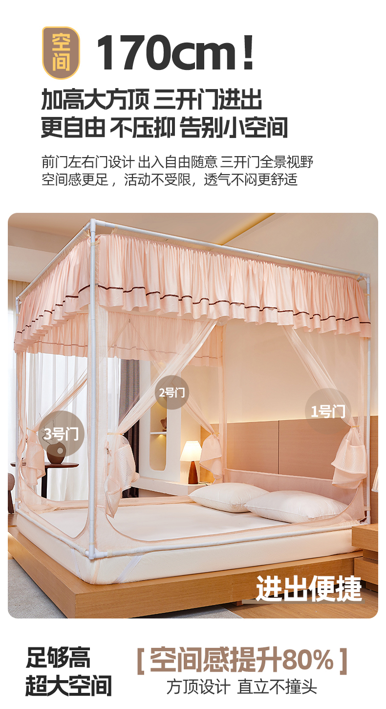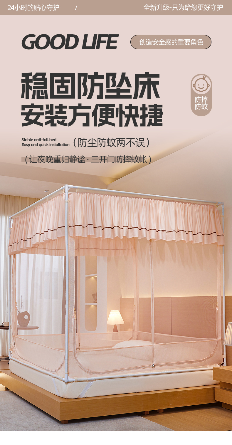 当前位置: 91家纺网 > 商品网购 > 床上用品 > 蚊帐 > 坐床式蚊帐 > 夏彩 2025新款浪漫唯美T+U床笠式坐床外穿防摔蚊帐-88610 886610浅粉玉