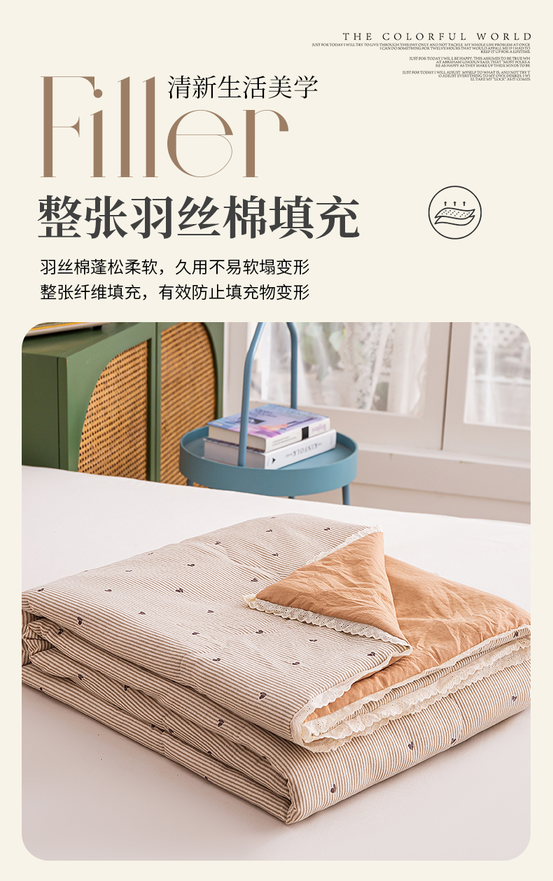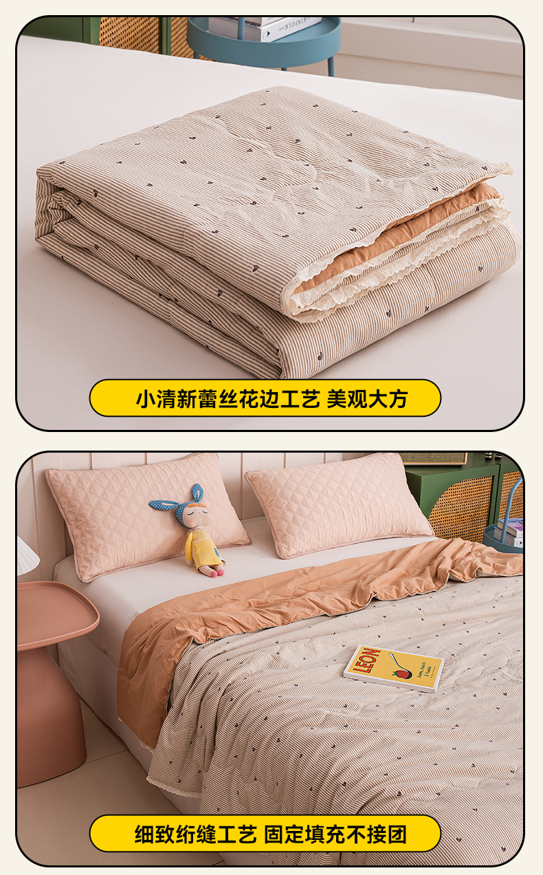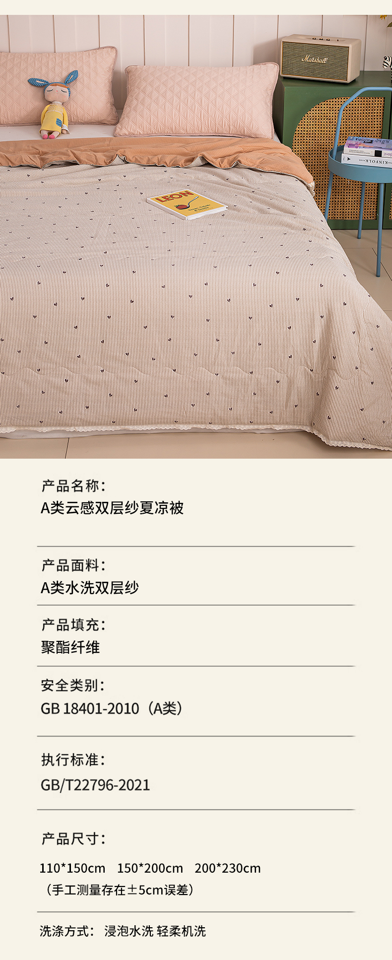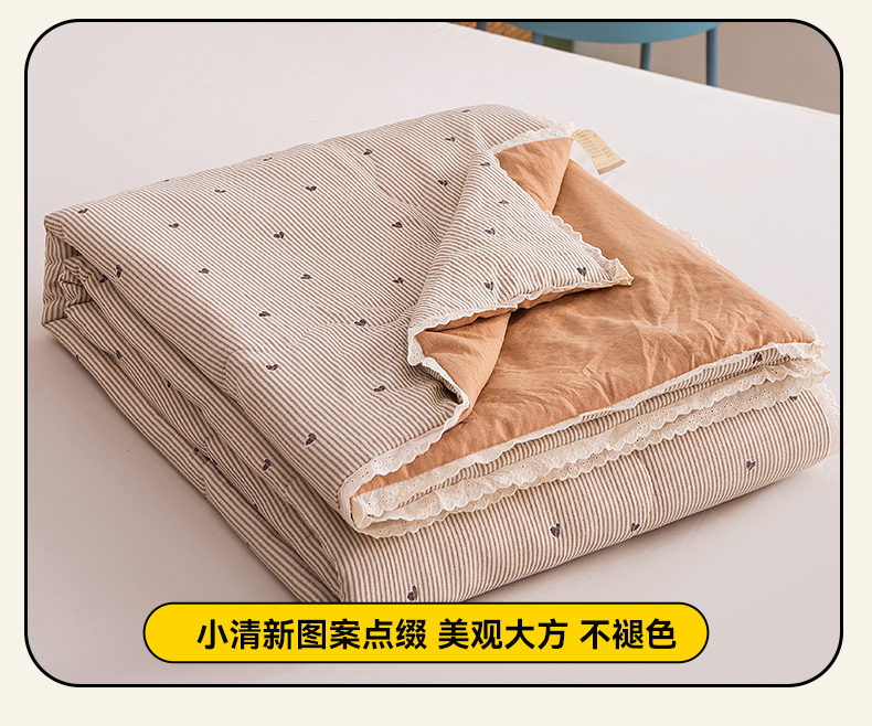 商品名称:艺菲阁家纺 2025新款花边款小碎花A类云感双层纱夏被 倾心-米