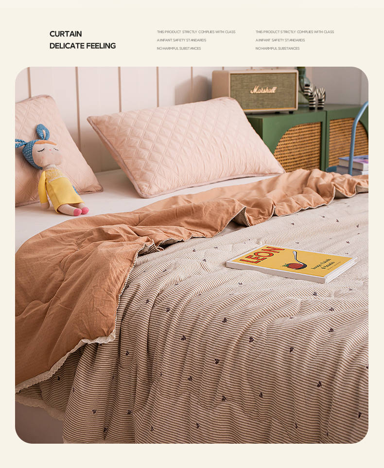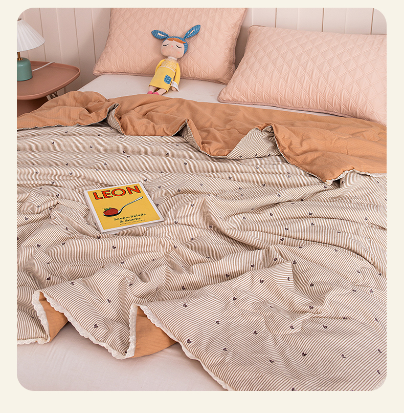 艺菲阁家纺 2025新款花边款小碎花A类云感双层纱夏被 倾心-米