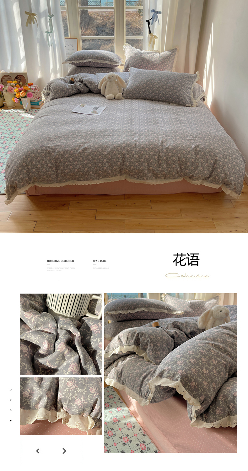 商品名称:十里居 2025春夏新款舒柔棉韩版蕾丝花边款四件套 花语