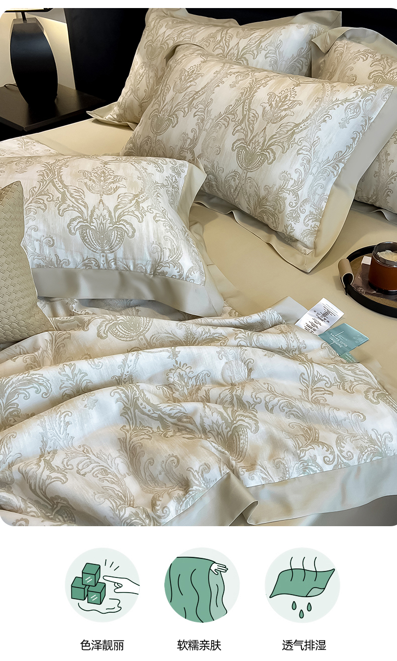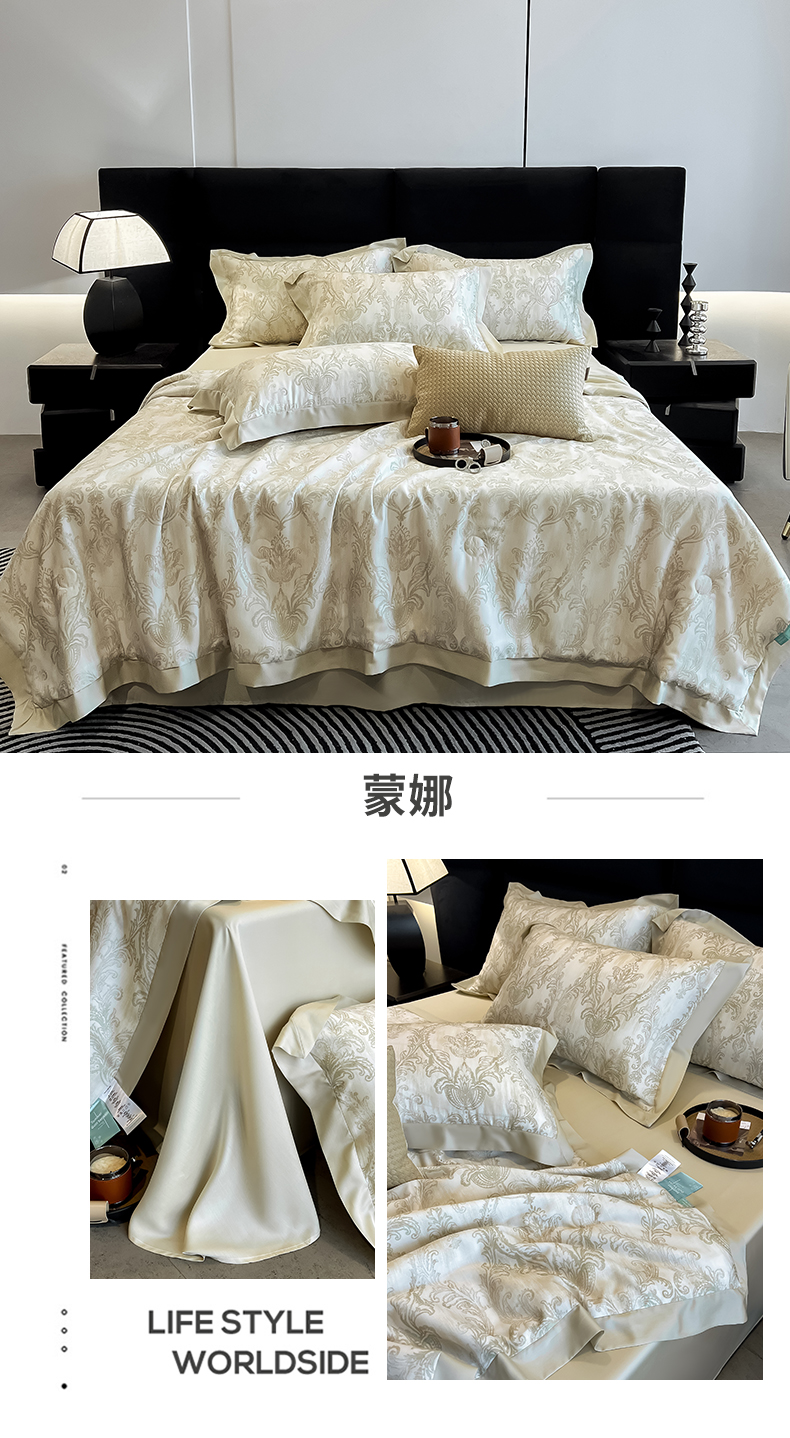 商品名称:朵希曼2025新款50天丝宽边夏被和夏被四件套系列 蒙娜