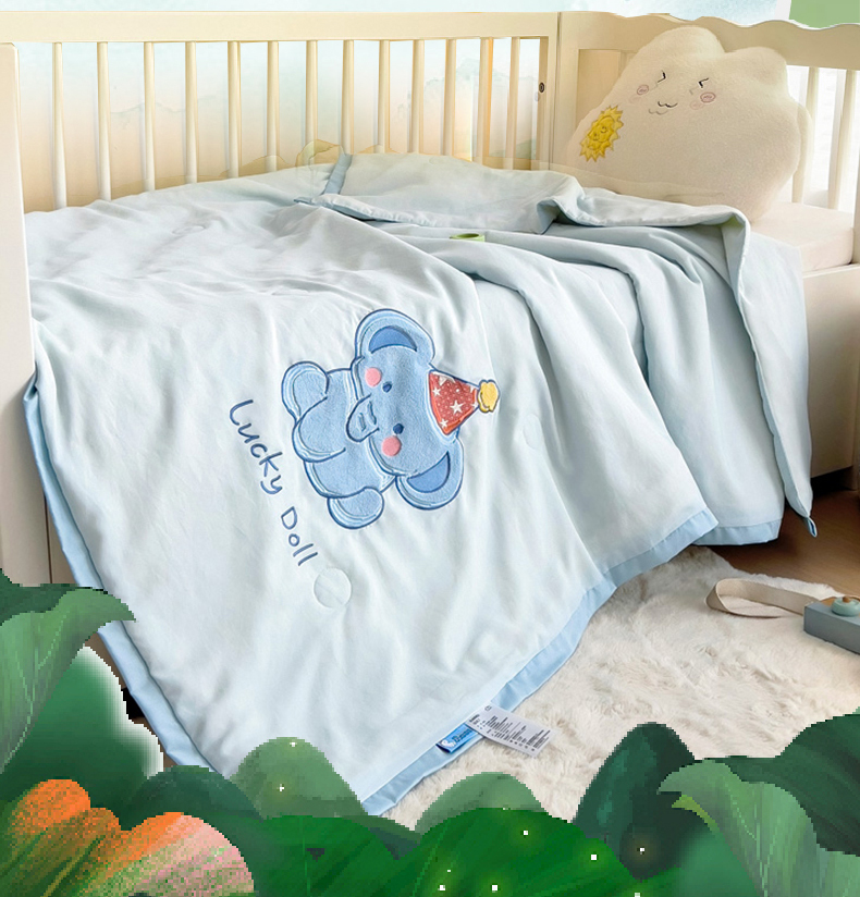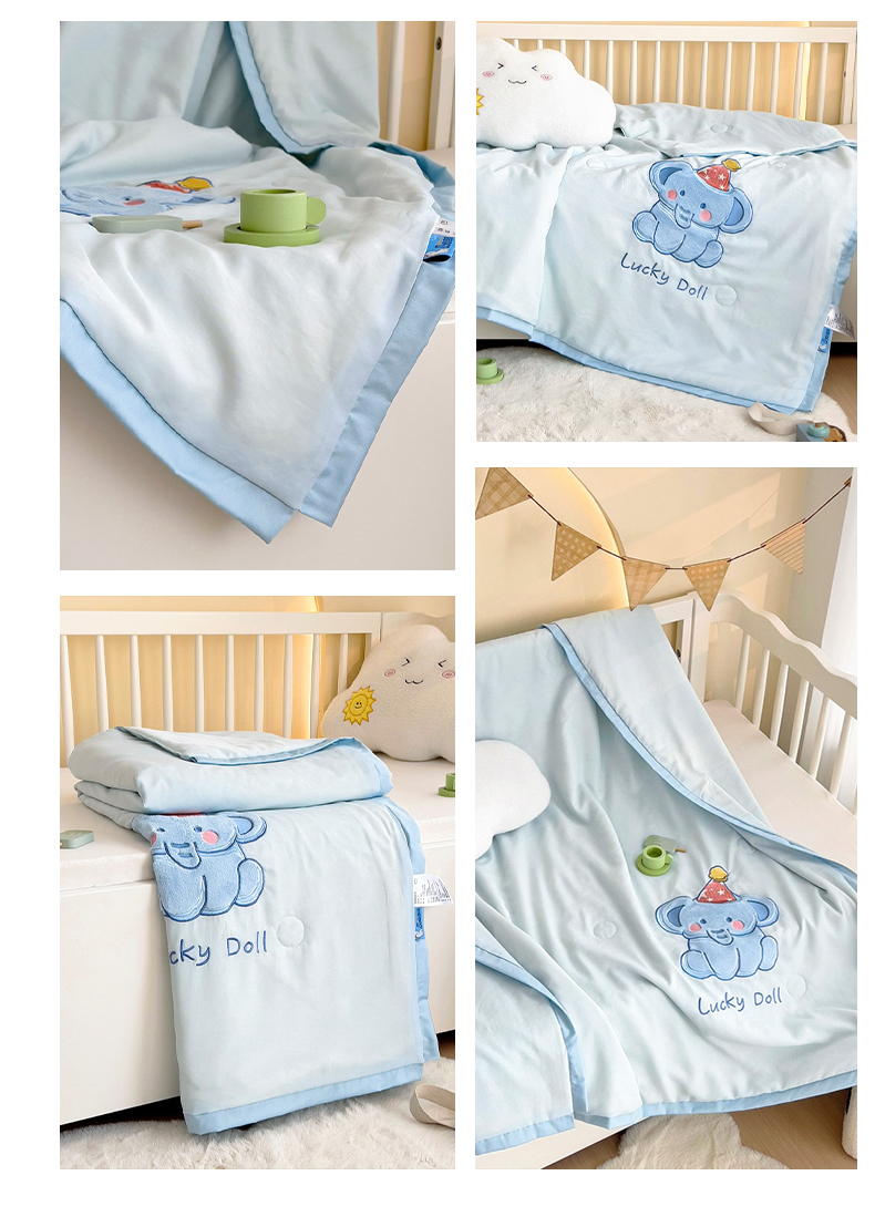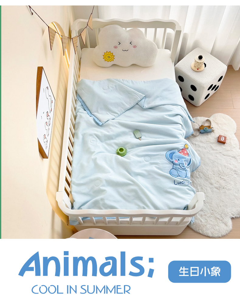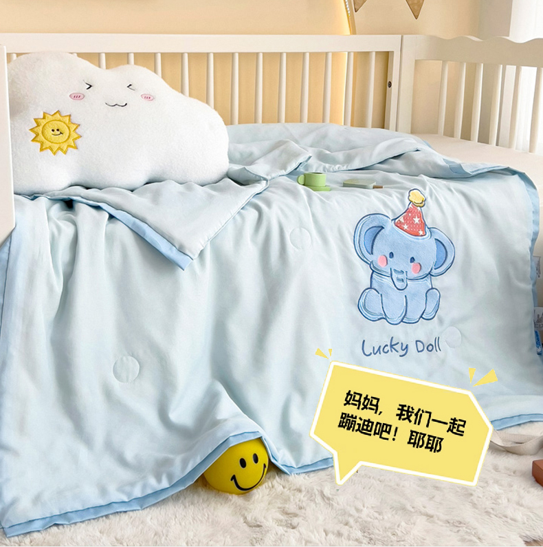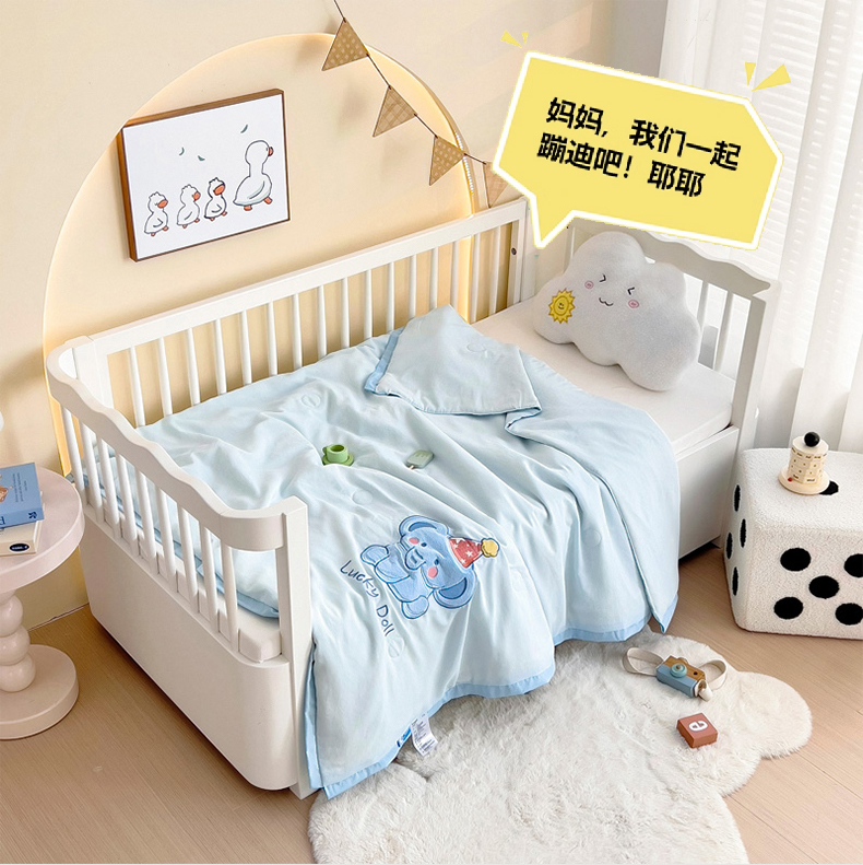 御棉坊 2025年新款A类凉小荷绣花款儿童夏被 生日小象