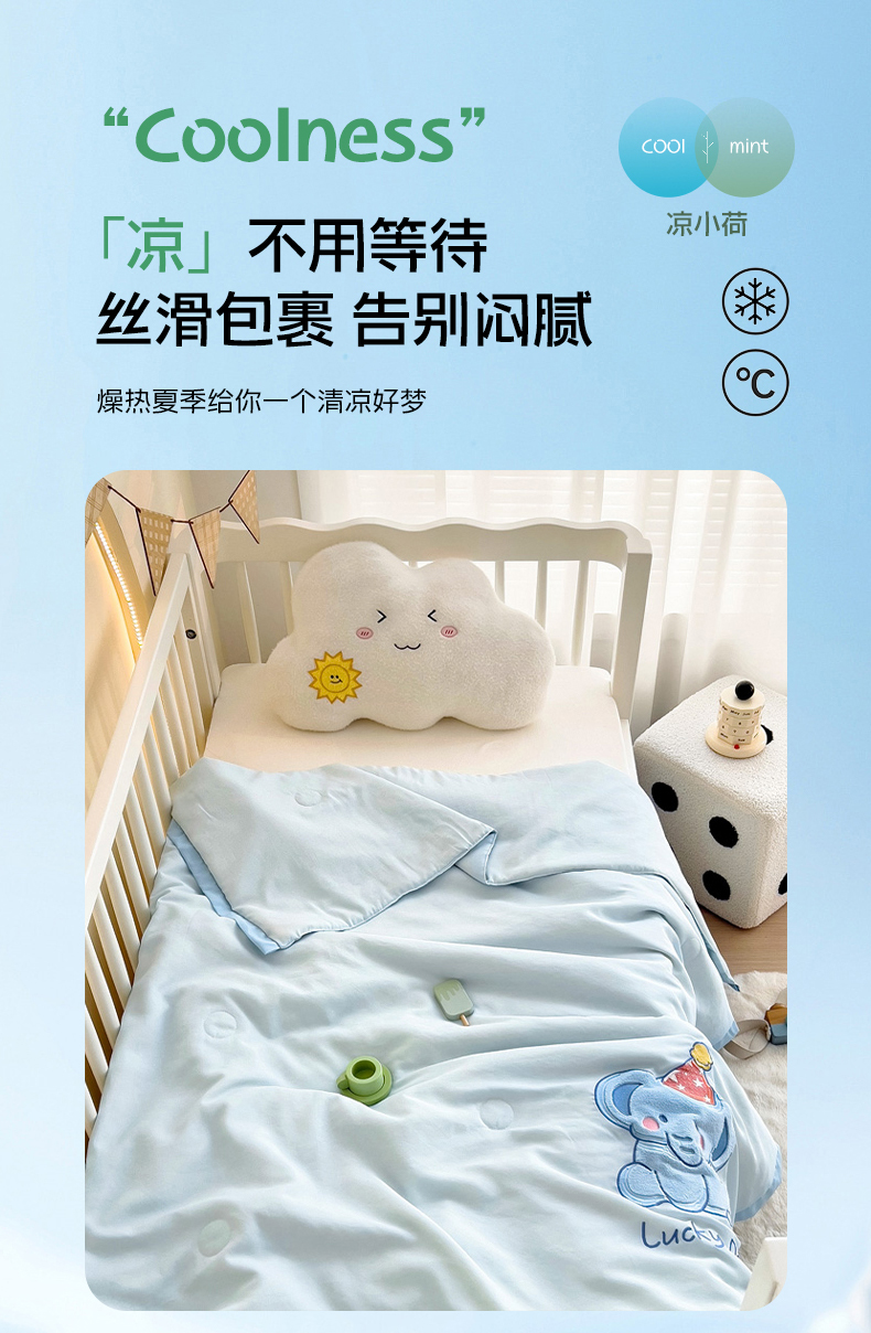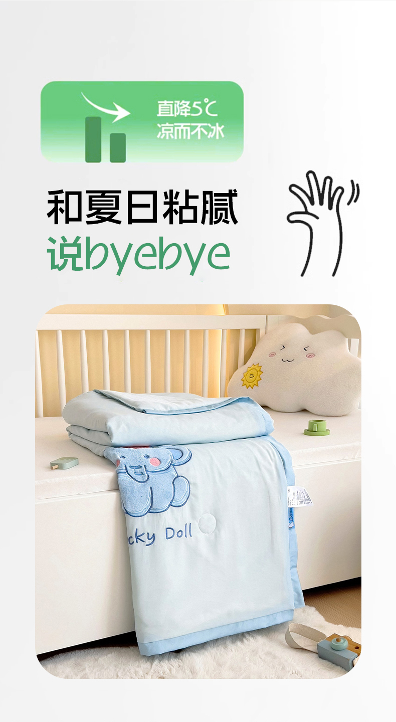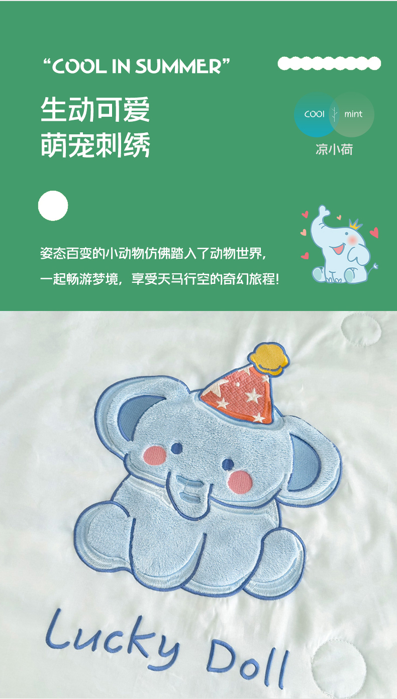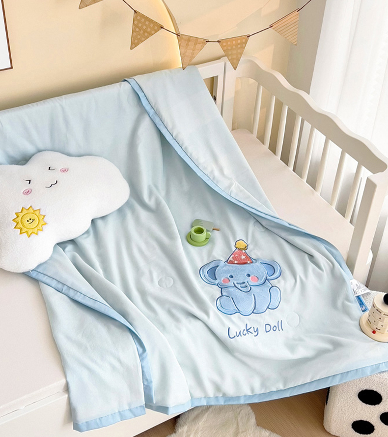 御棉坊 2025年新款A类凉小荷绣花款儿童夏被 生日小象