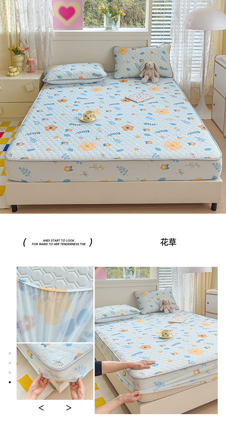 商品名称:小萌虎 2025新款凉感丝胶质凉席床笠款 花草