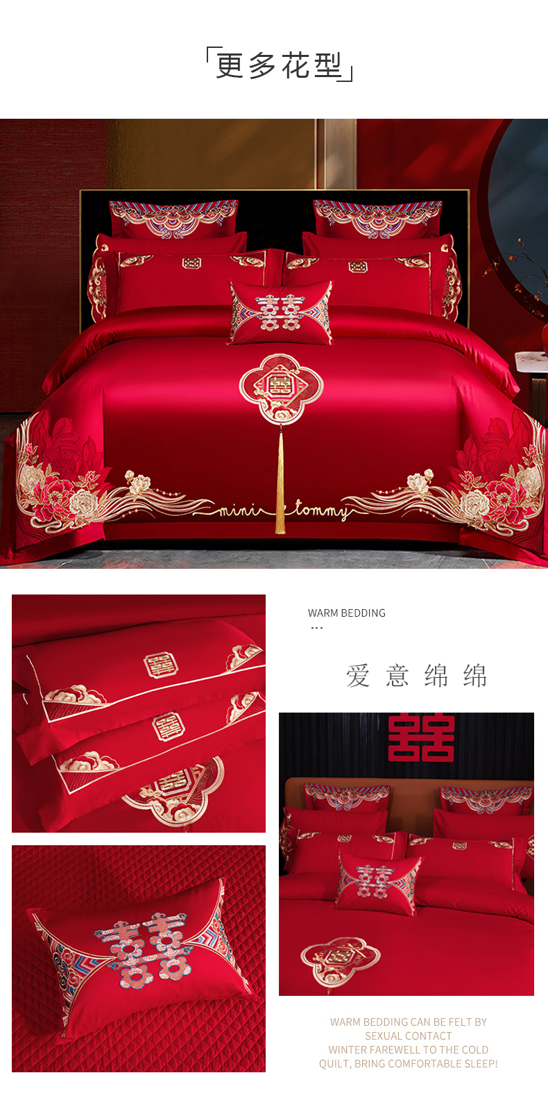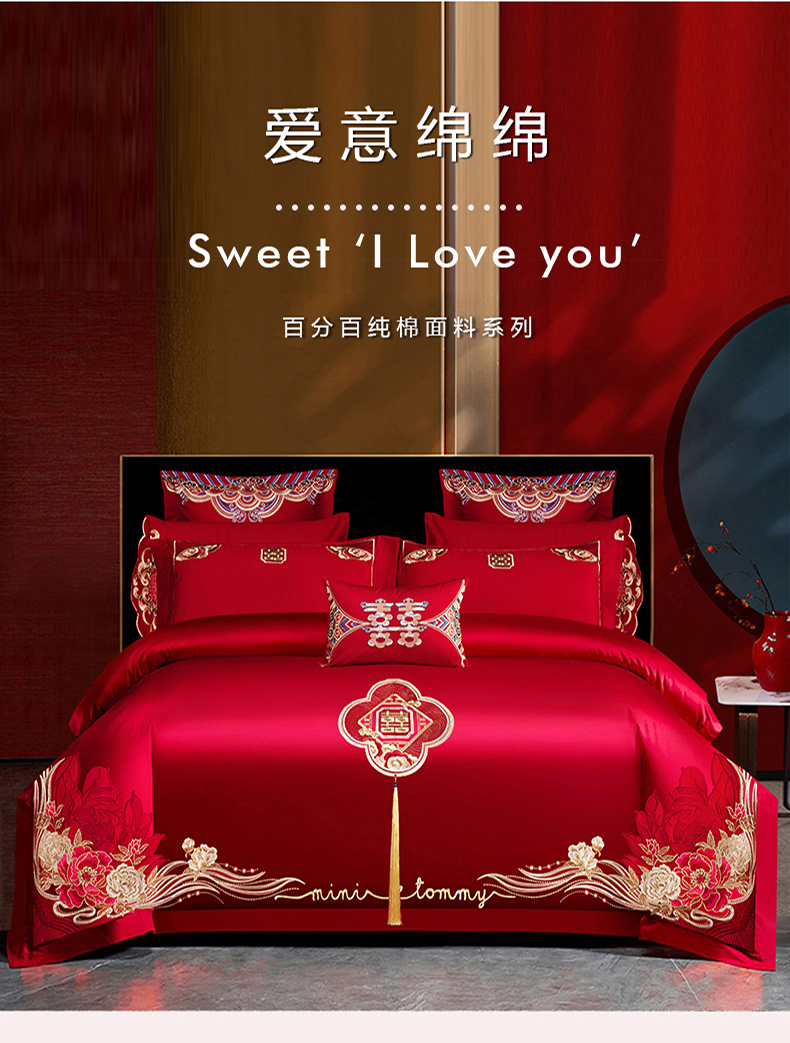 (总)甜咪咪婚庆 2025新款50支长绒棉全棉婚庆床单床盖四件套多件套刺绣工艺,洛可可,爱恋小熊,爱意久久,多子多福,花田喜事,节节高升,克拉恋人,浪漫情怀,怦然心动红,怦然心动玉,甜心玫瑰,温莎公主,伊甸园,醉红妆