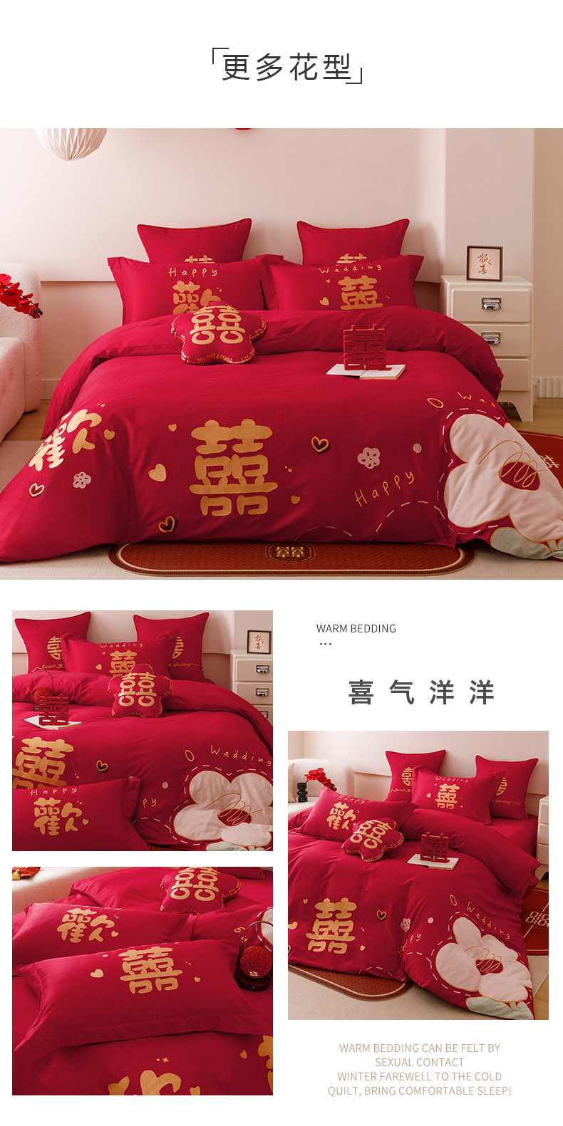 (总)甜咪咪婚庆 2025新款纯棉刺绣婚庆大红四件套