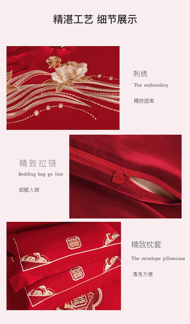 商品名称:(总)甜咪咪婚庆 2025新款纯棉刺绣婚庆大红四件套