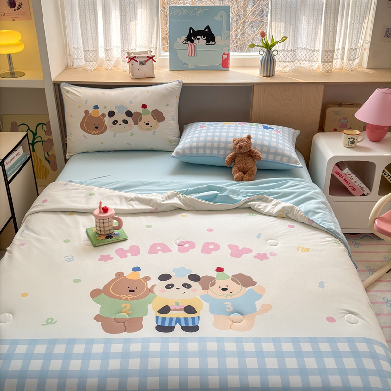星期八 2025新款针织棉夏被四件套 快乐伙伴