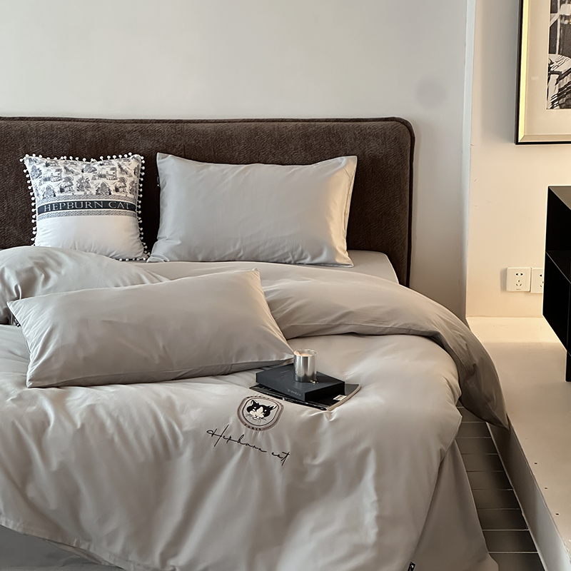 (总)赫帛 2025新款A类全棉棉麻色织提花四件套-灰屿,灰屿