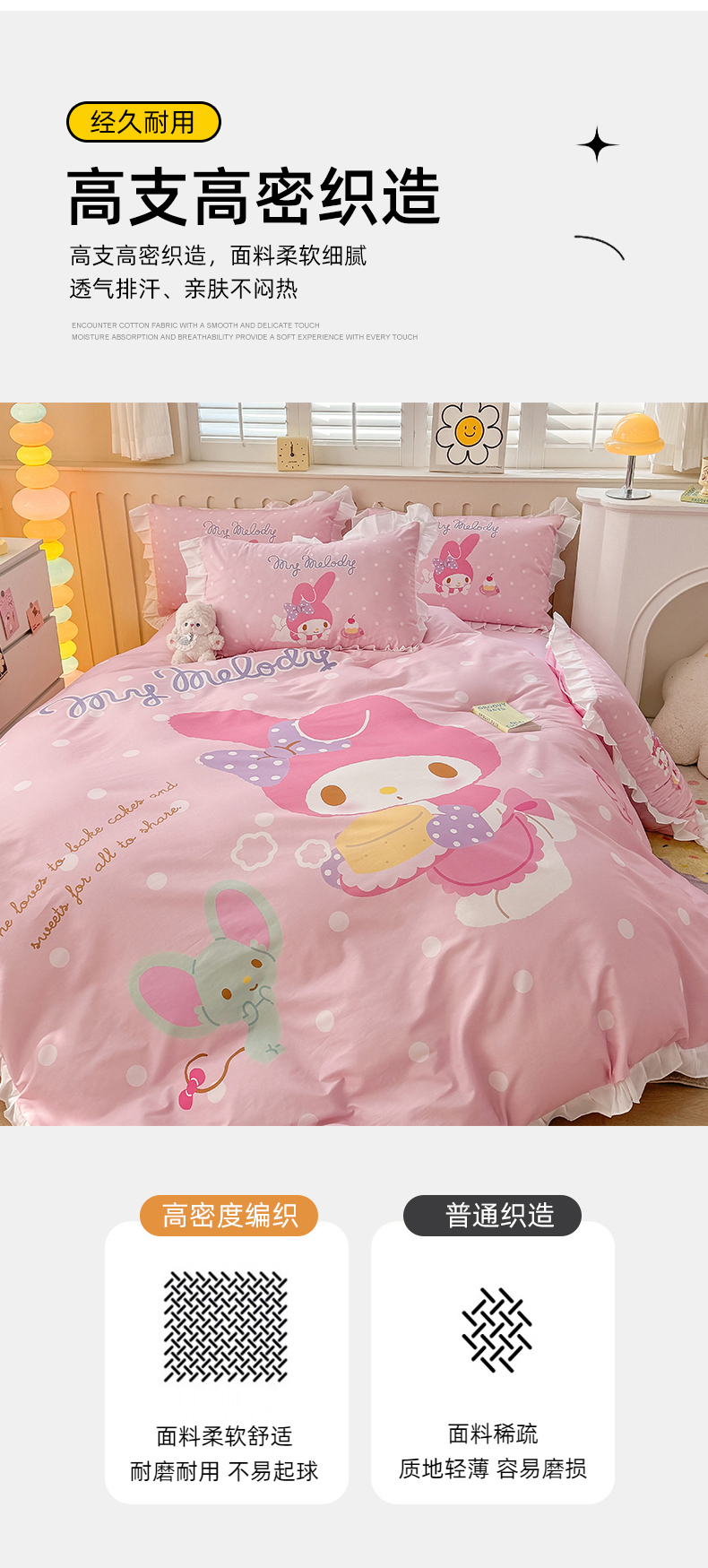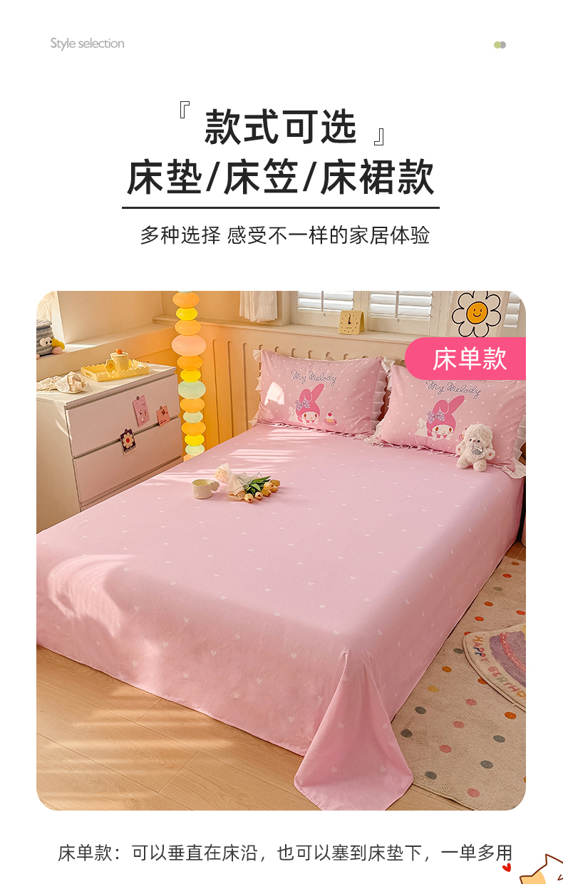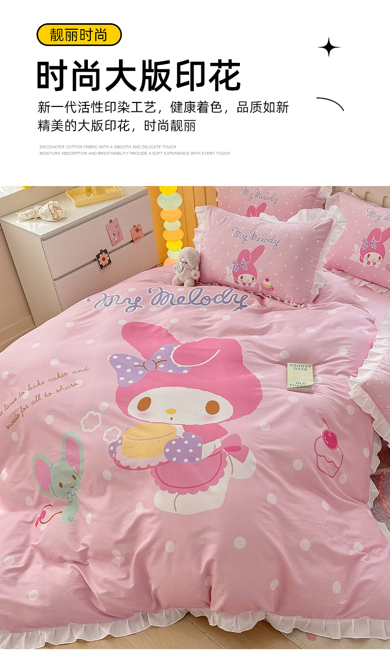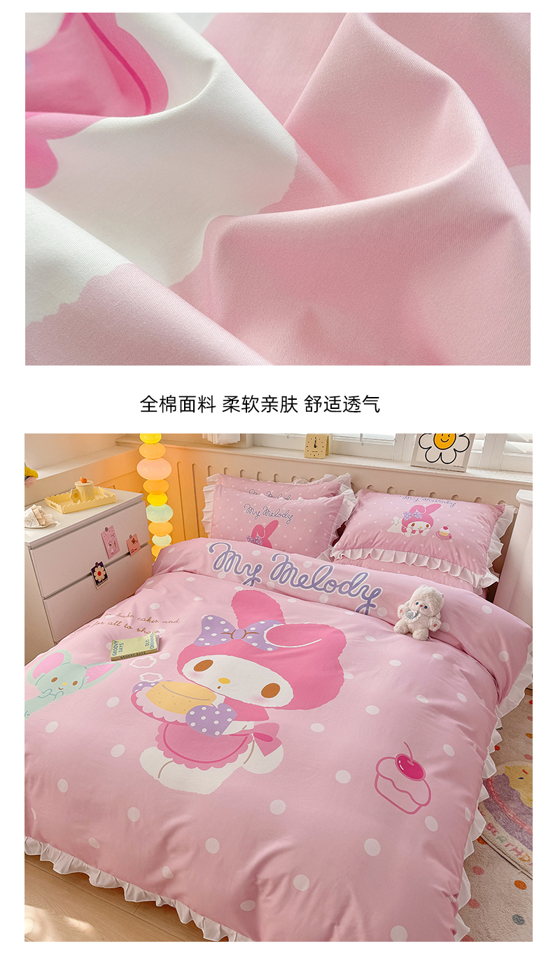 当前位置: 91家纺网 > 商品网购 > 床品套件 > 四件套 > 全棉普通四件套 > 玉元坊 2025新款三丽鸥系列数码印花纯棉全棉床裙三件套四件套-花边款 花边款-甜品美乐蒂