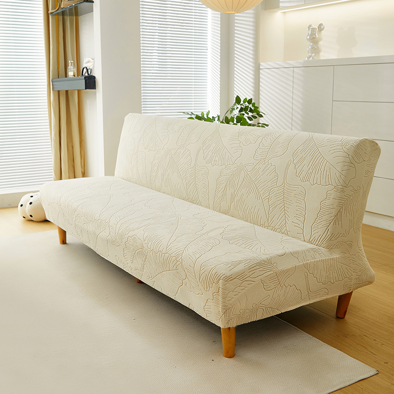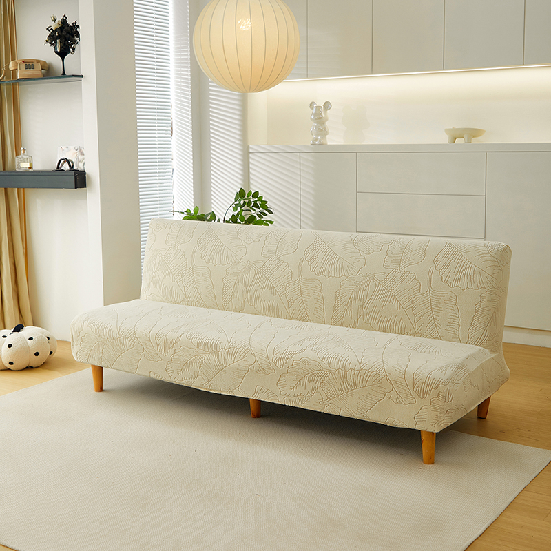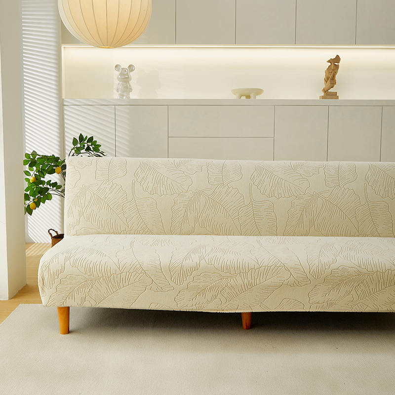 逐日沙发套 2025新款提花绒沙发床套-叶沙 米白