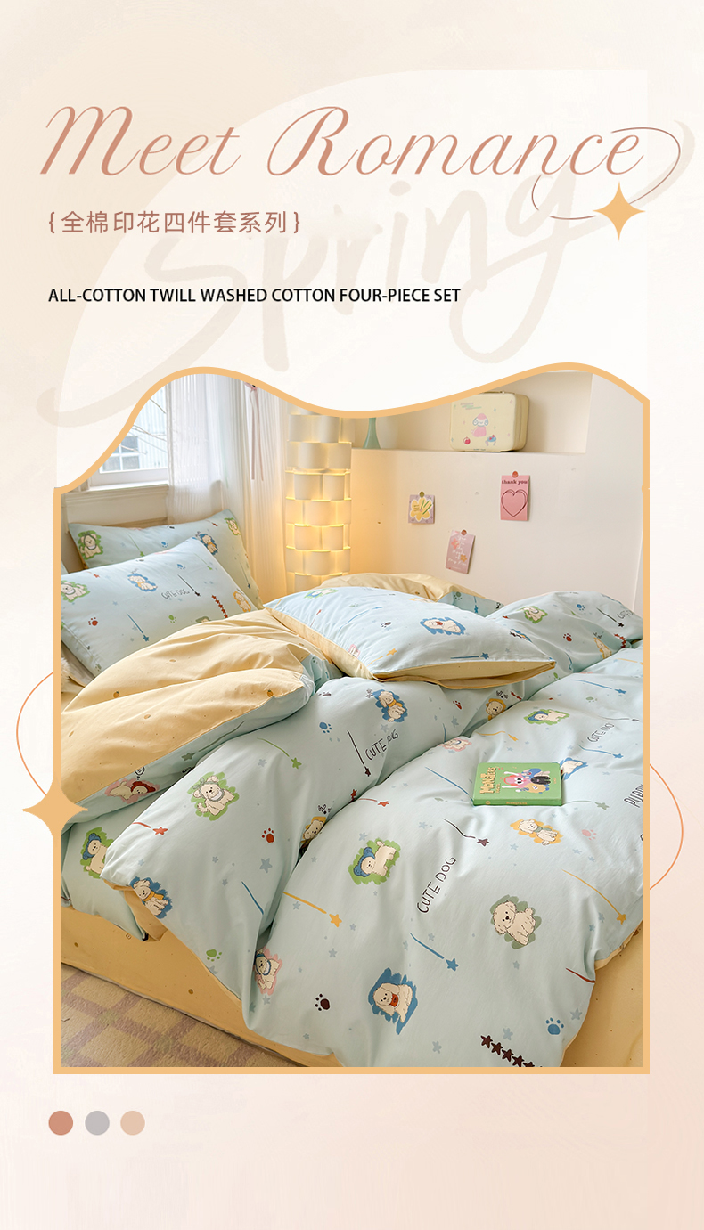 当前位置: 91家纺网 > 商品网购 > 床品套件 > 四件套 > 全棉普通四件套 > 清雅福 2025全棉13372小清新四件套和单被套早春系列第二批--四件套 旺柴犬·蓝