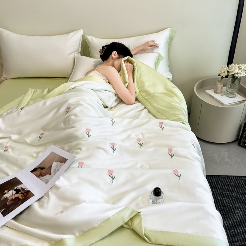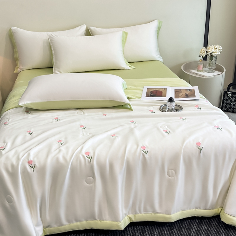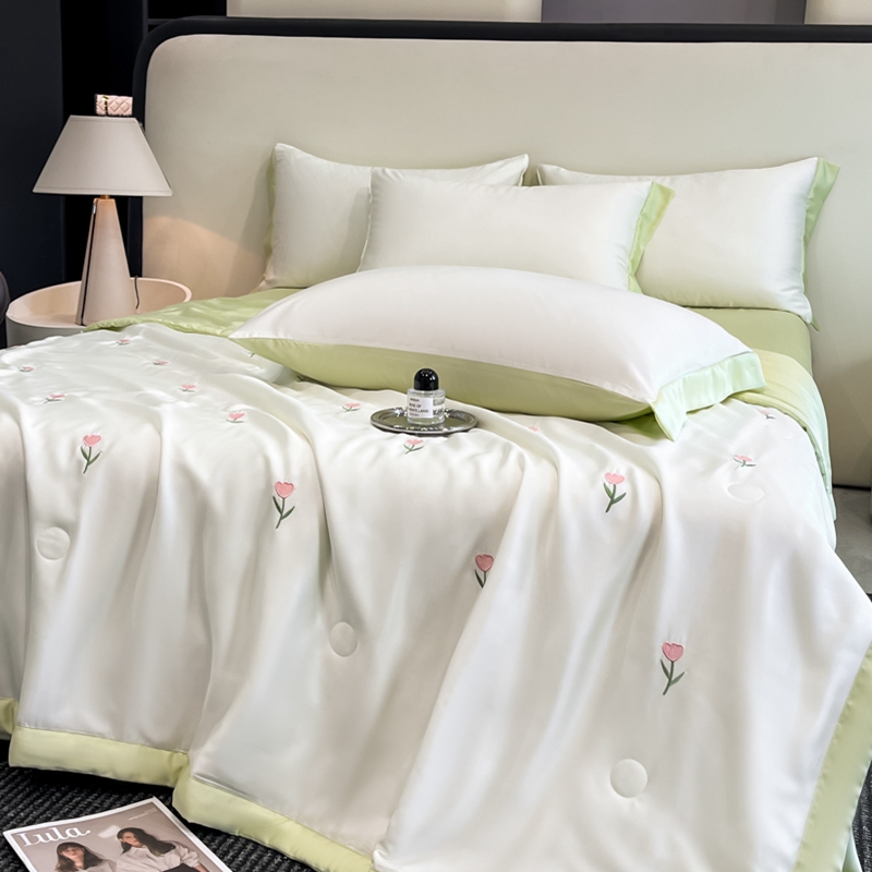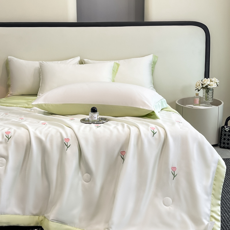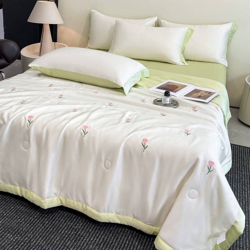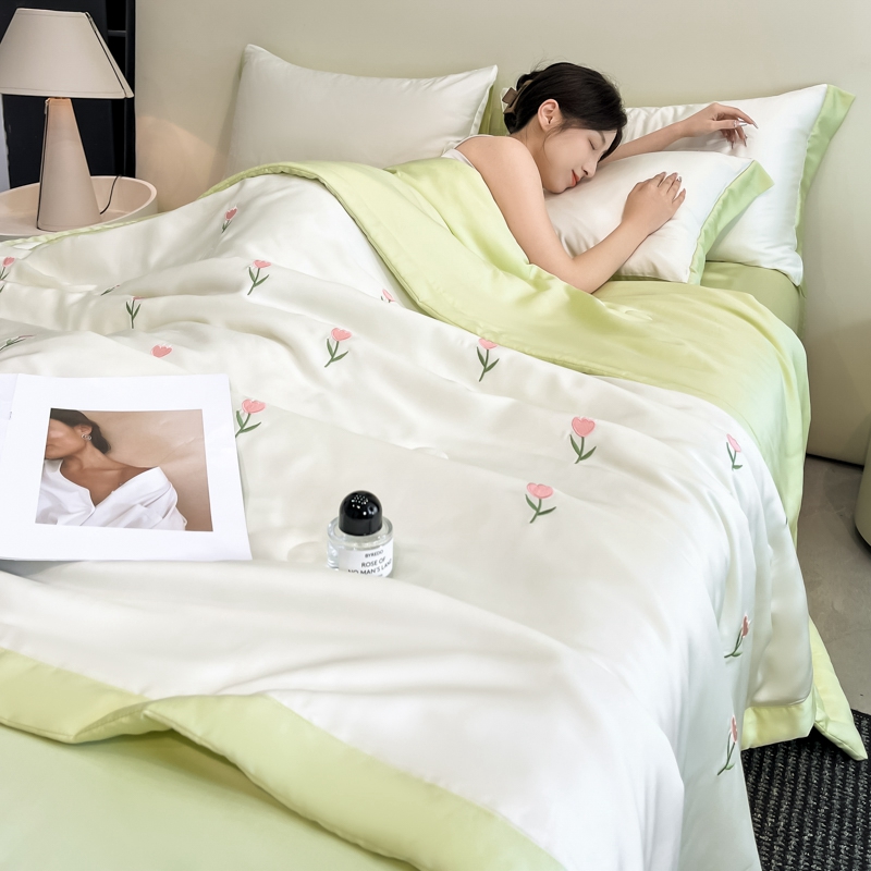 当前位置: 91家纺网 > 商品网购 > 床品套件 > 四件套 > 夏被四件套 > 利欧 2025新款直播电商热卖爆款刺绣水洗真丝夏被四件套夏凉被空调被花朵-奶白绿