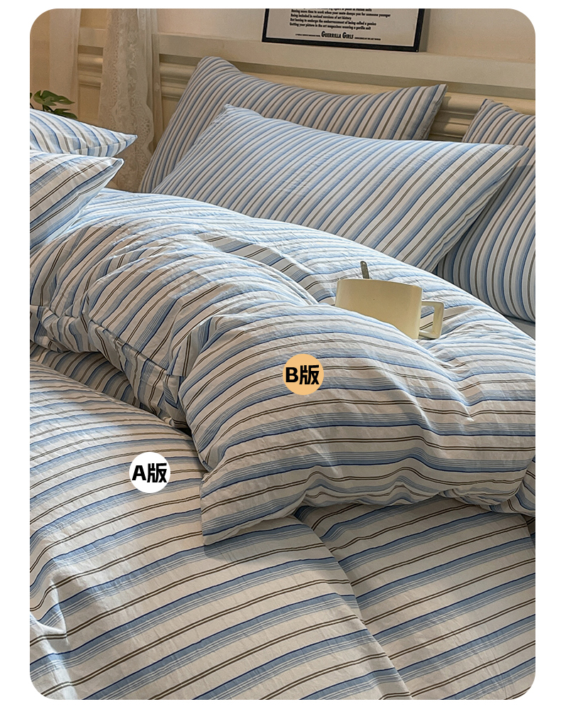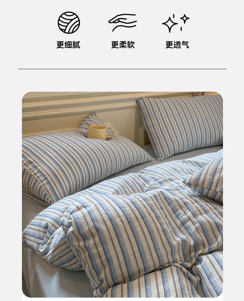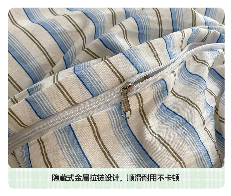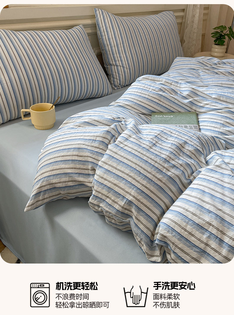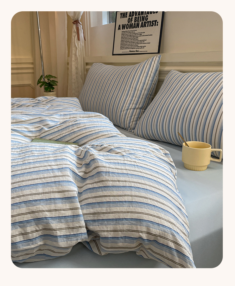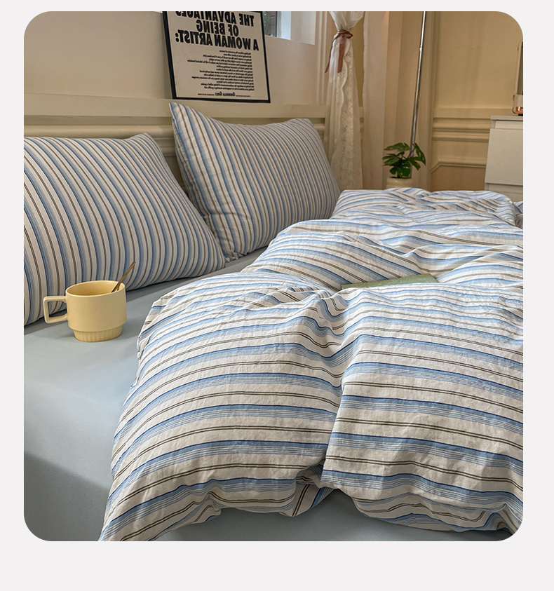 当前位置: 91家纺网 > 商品网购 > 床品套件 > 四件套 > 水洗棉四件套 > 盛秋家纺 2025新款水洗棉格子系列四件套蓝苏条+天空蓝