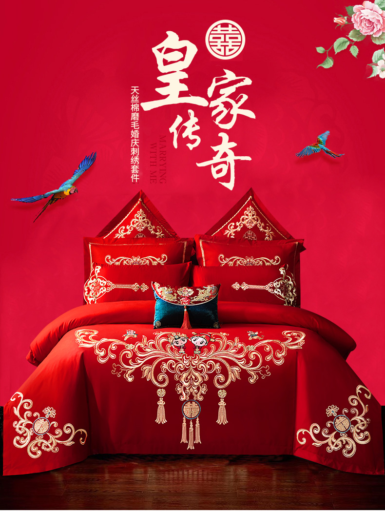 (总)甜咪咪婚庆 2025新款50支长绒棉全棉婚庆床单床盖四件套多件套刺绣工艺,洛可可,爱恋小熊,爱意久久,多子多福,花田喜事,节节高升,克拉恋人,浪漫情怀,怦然心动红,怦然心动玉,甜心玫瑰,温莎公主,伊甸园,醉红妆