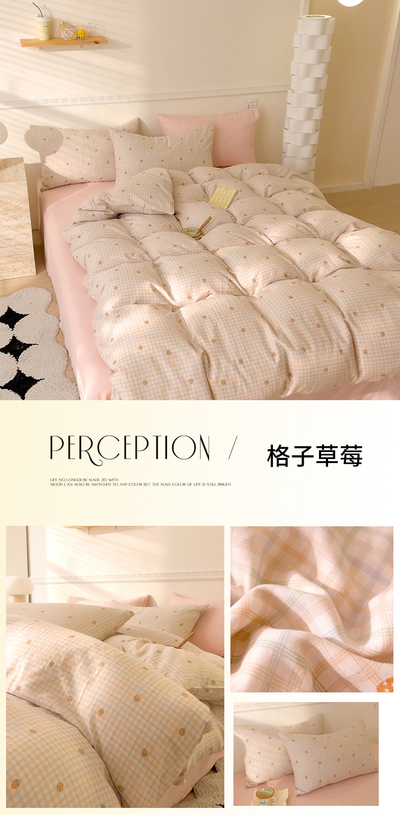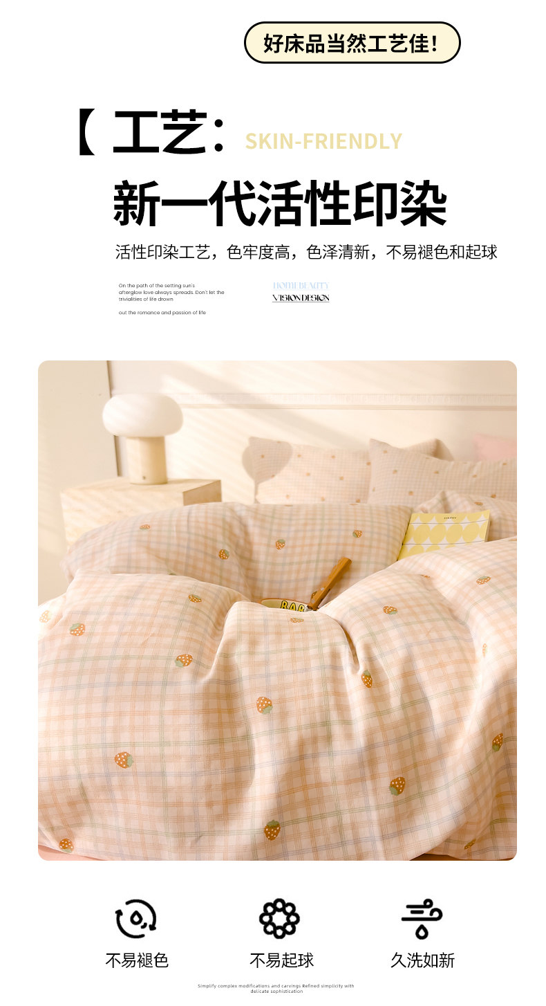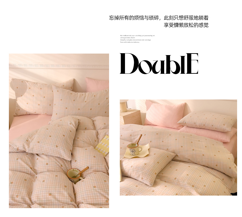 当前位置: 91家纺网 > 商品网购 > 床品套件 > 四件套 > 全棉普通四件套 > DoDo 兜兜 2026新款全棉双层纱印花四件套(可定做尺寸) 格子草莓