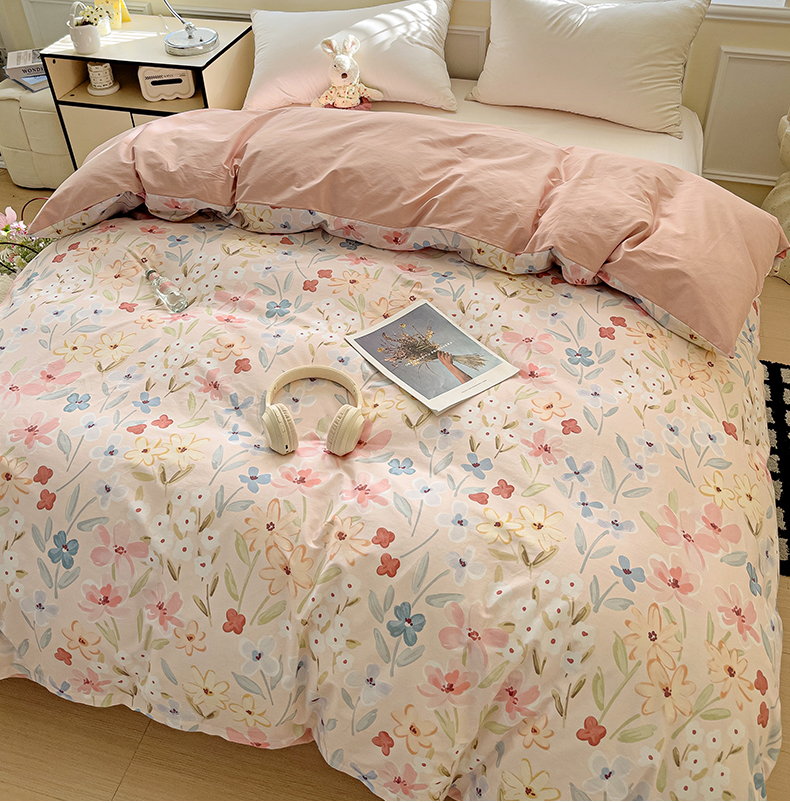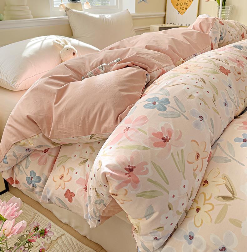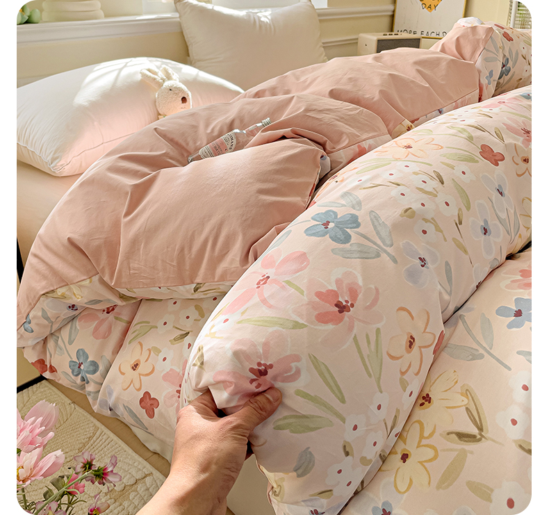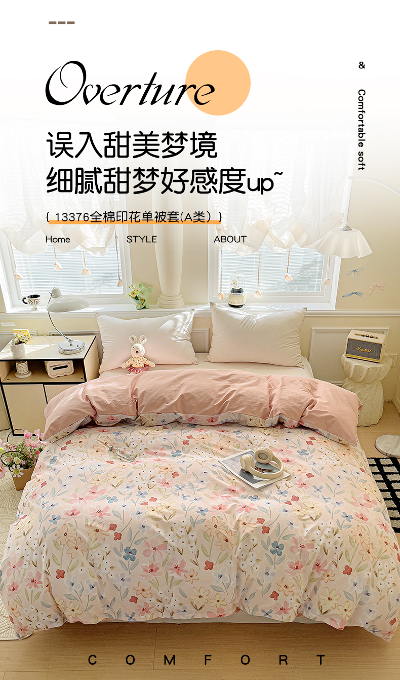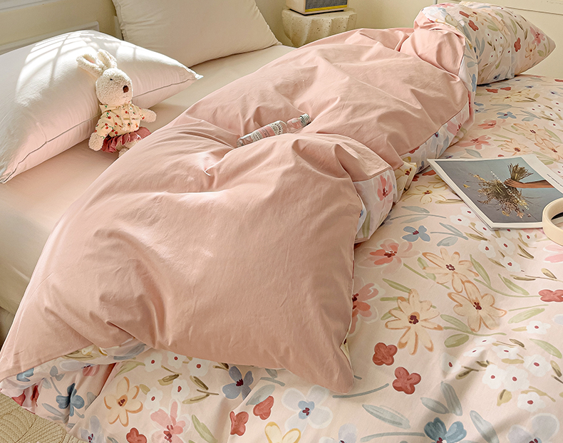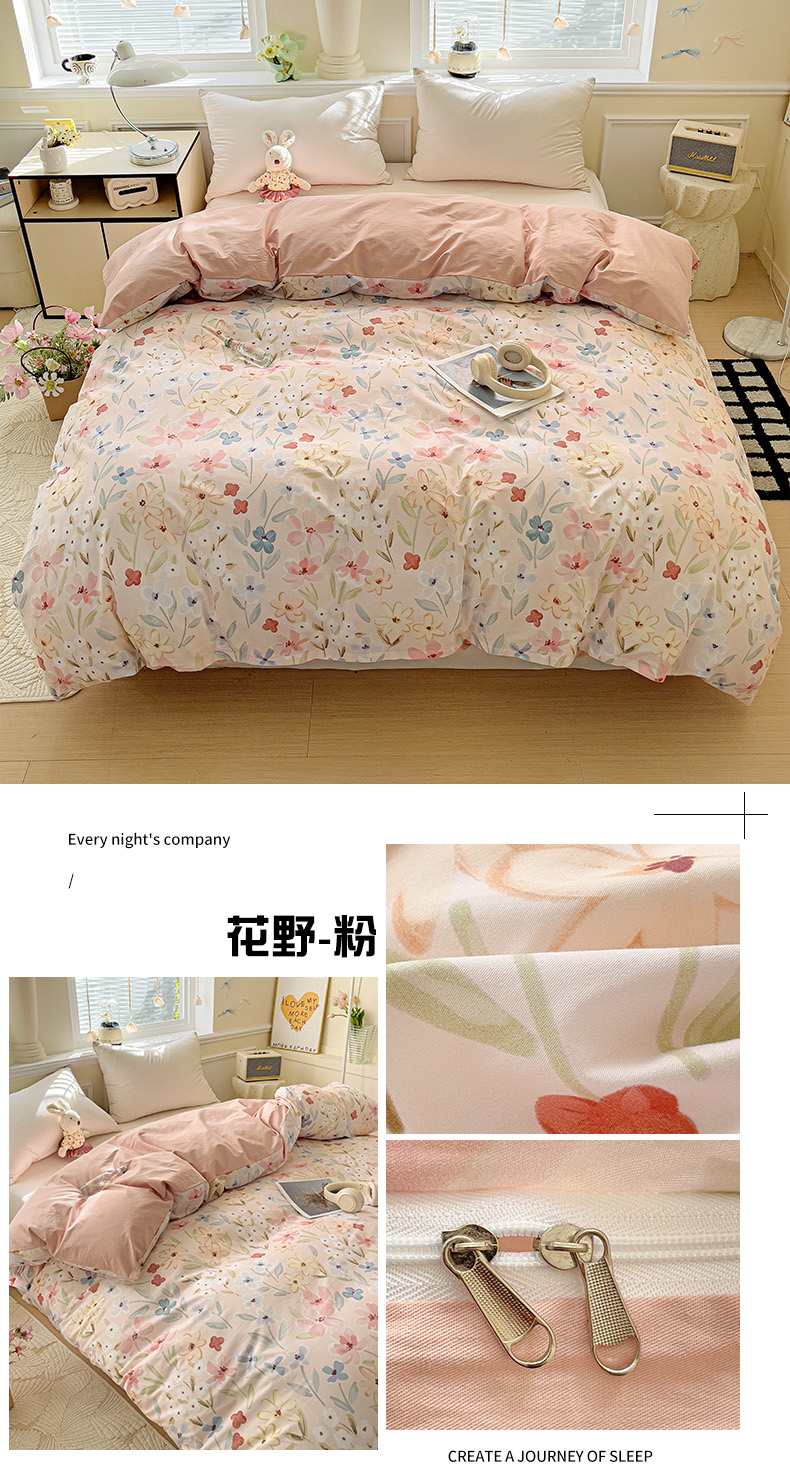 大柏树 2025新款全棉13376印花四件套系列(可定制)-单被套花野-粉