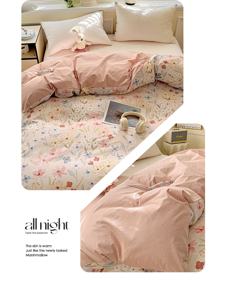 • 91家纺网 家纺一手货源 找家纺 大柏树 2025新款全棉13376印花四件套系列(可定制)-单被套花野-粉