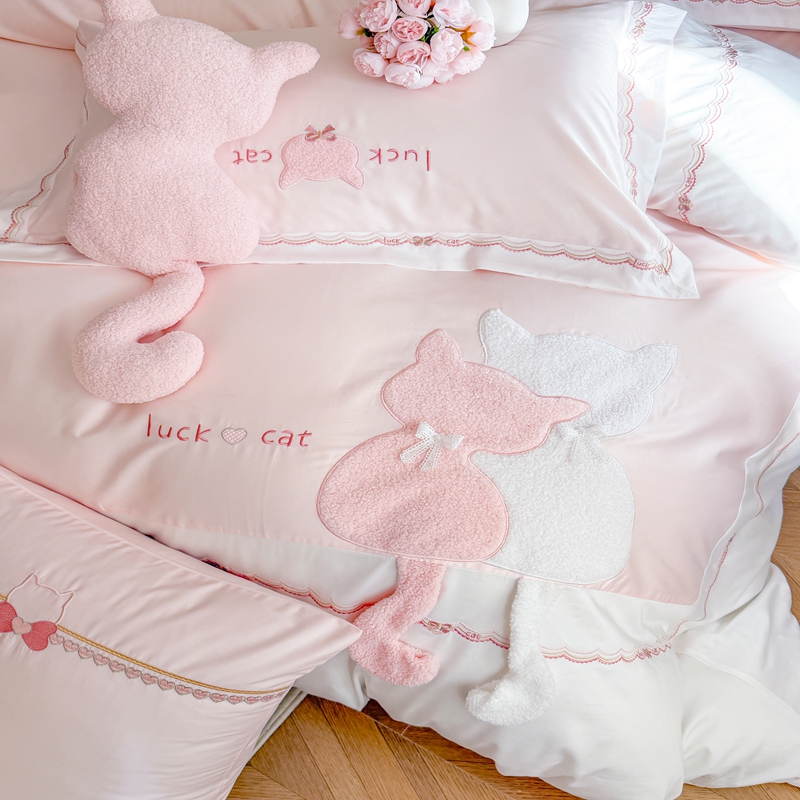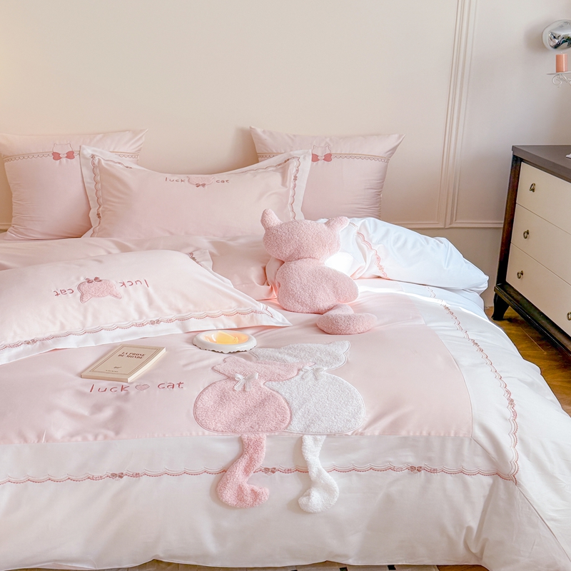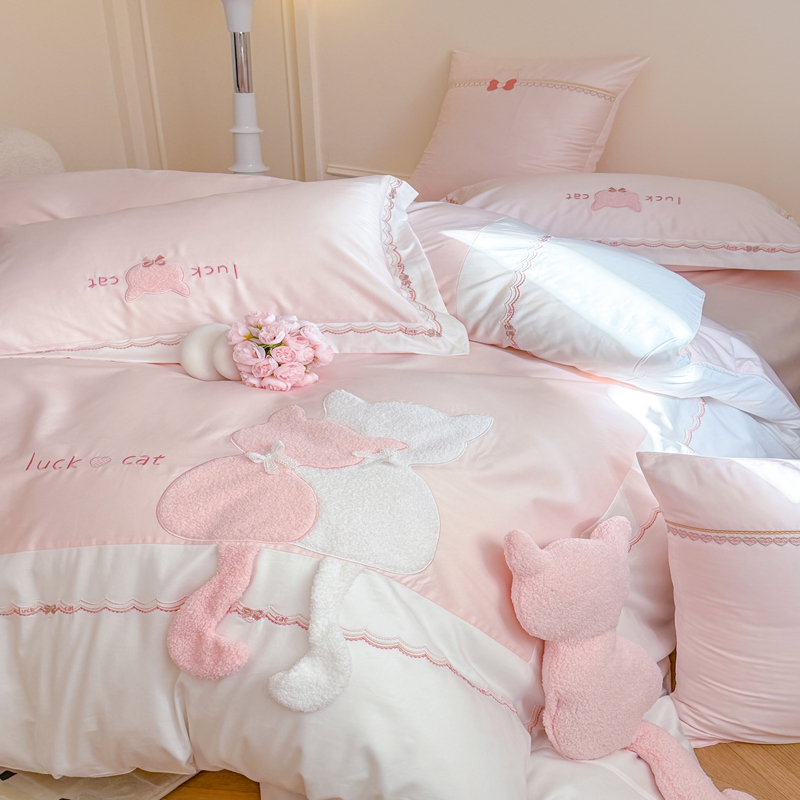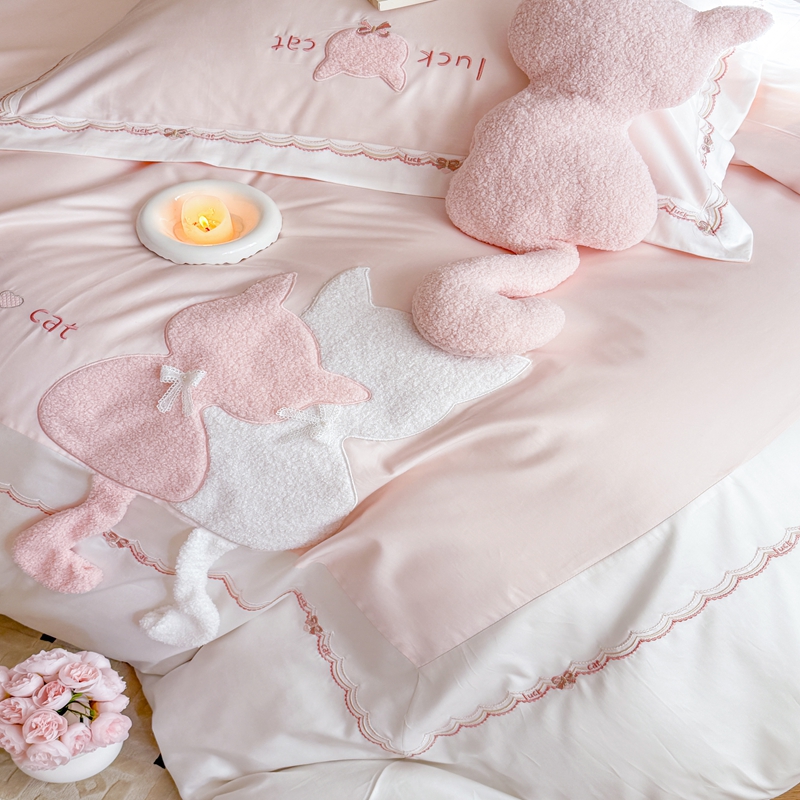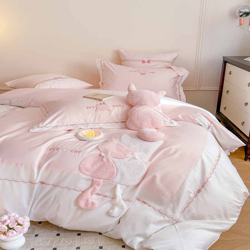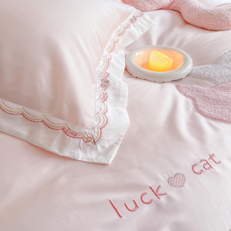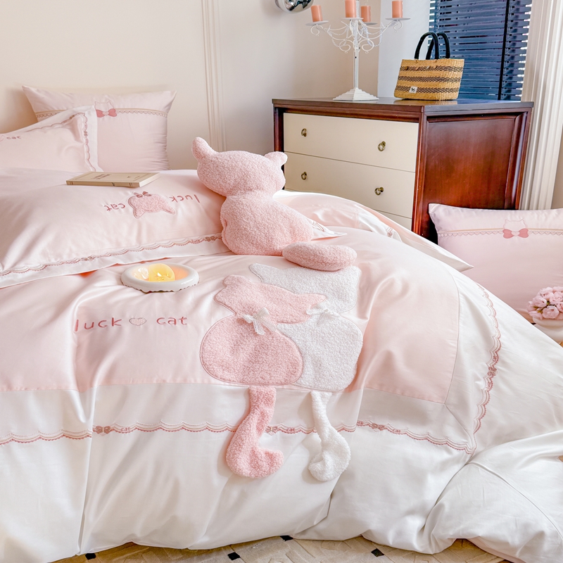 当前位置: 91家纺网 > 商品网购 > 床品套件 > 四件套 > 长绒棉四件套 > (总)曼布缇2025春夏新款100S长绒棉纯棉绣花四件套-Luck猫