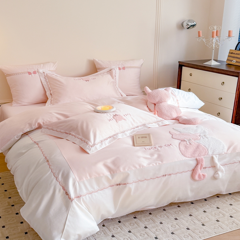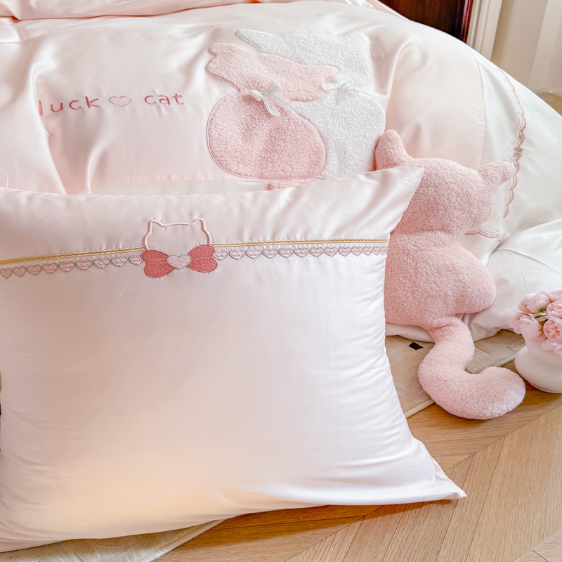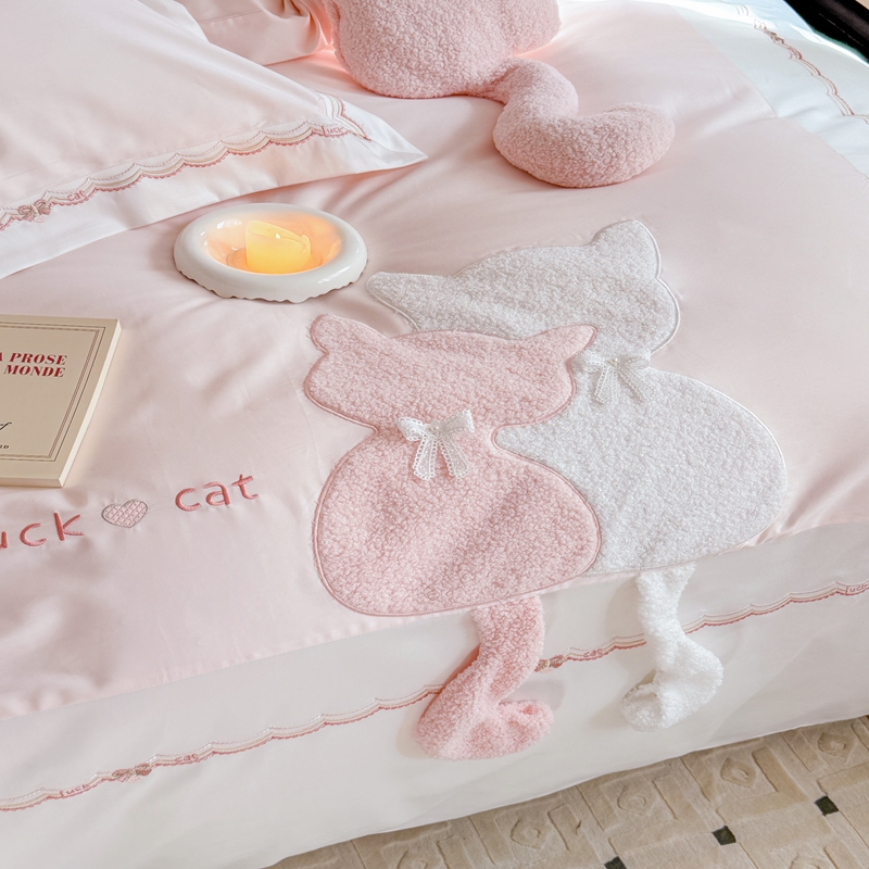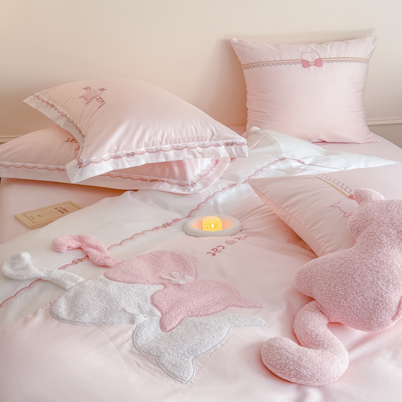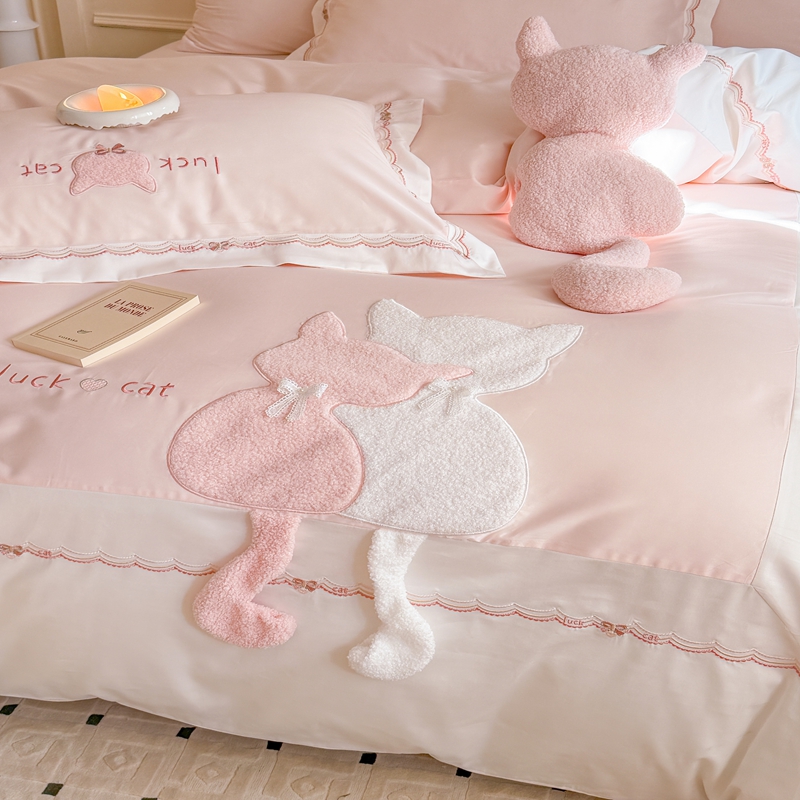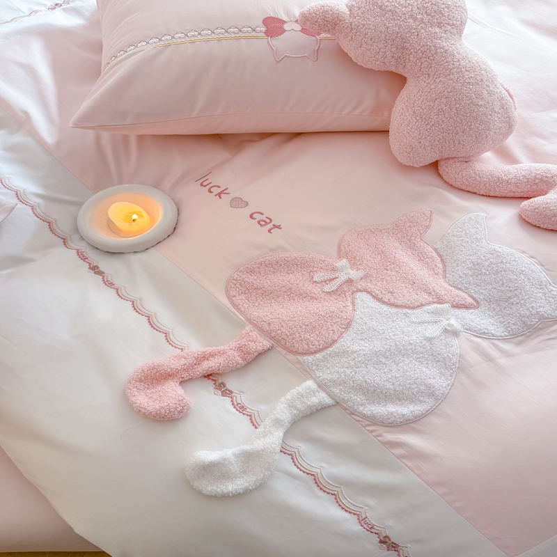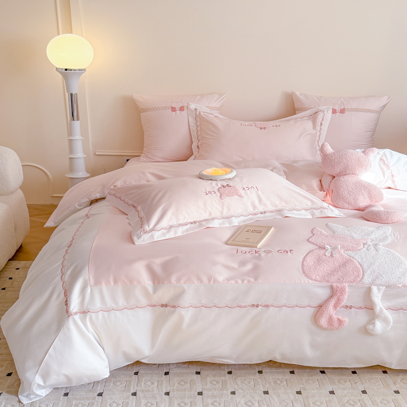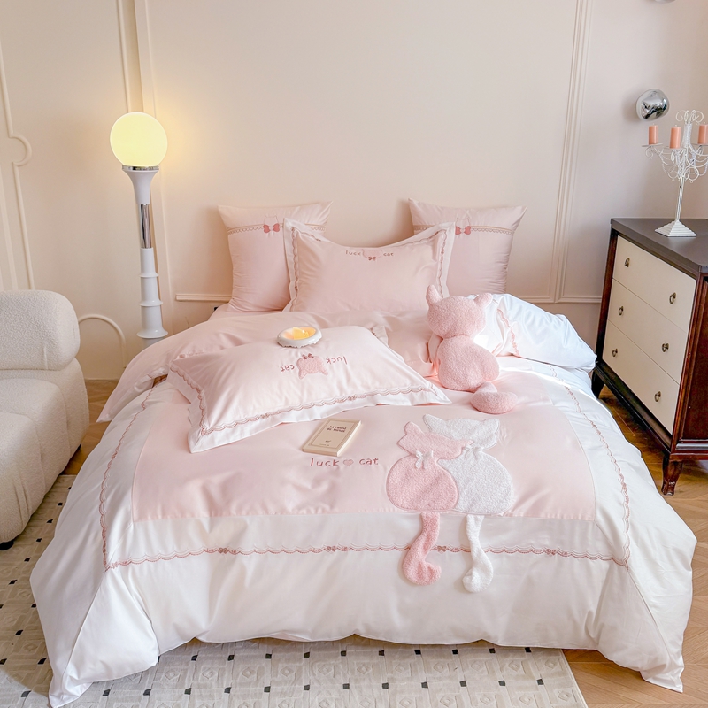 当前位置: 91家纺网 > 商品网购 > 床品套件 > 四件套 > 长绒棉四件套 > (总)曼布缇2025春夏新款100S长绒棉纯棉绣花四件套-Luck猫