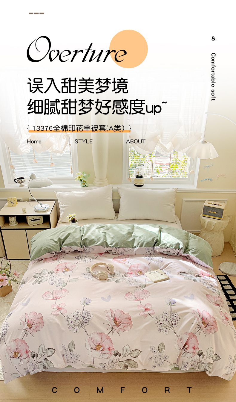 当前位置: 91家纺网 > 商品网购 > 床上用品 > 被套 > 大柏树 2025新款全棉13376印花四件套系列(可定制)-单被套枝意