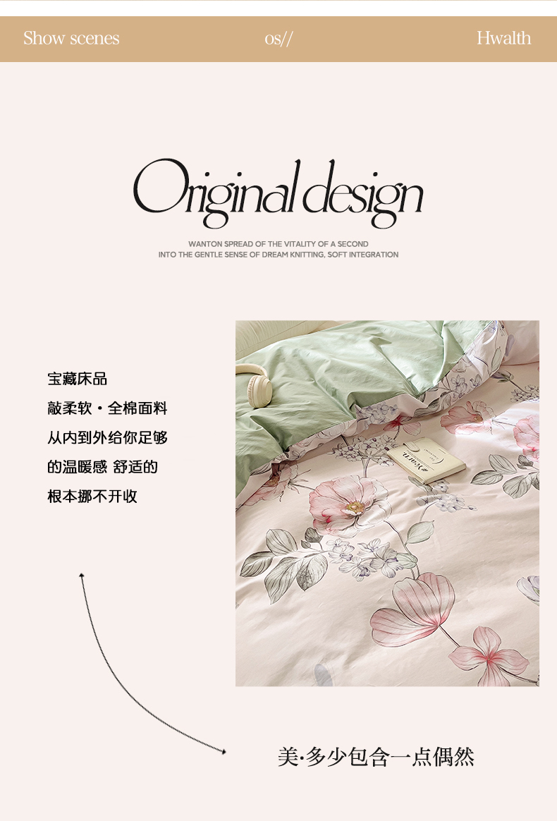 大柏树 2025新款全棉13376印花四件套系列(可定制)-单被套枝意