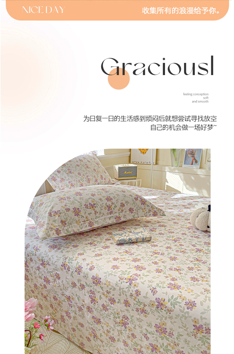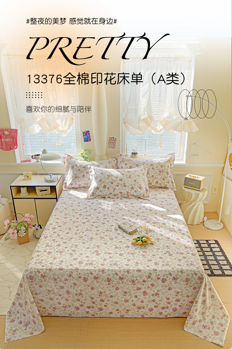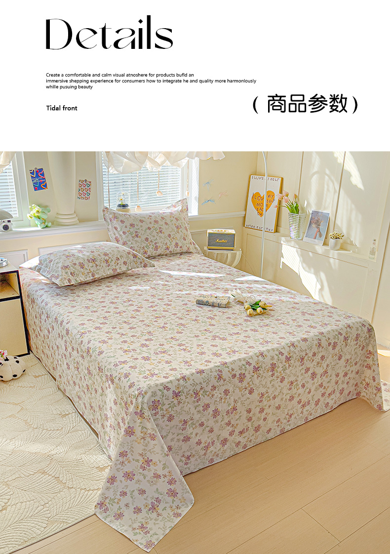 大柏树 2025新款全棉13376印花四件套系列(可定制)-单床单满庭芳