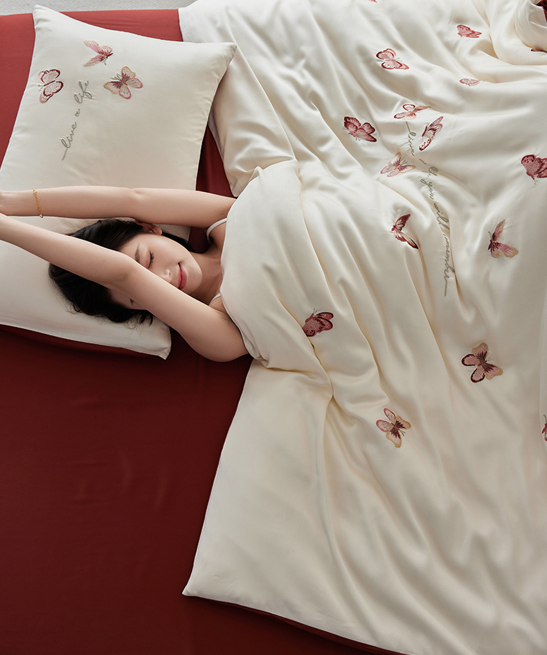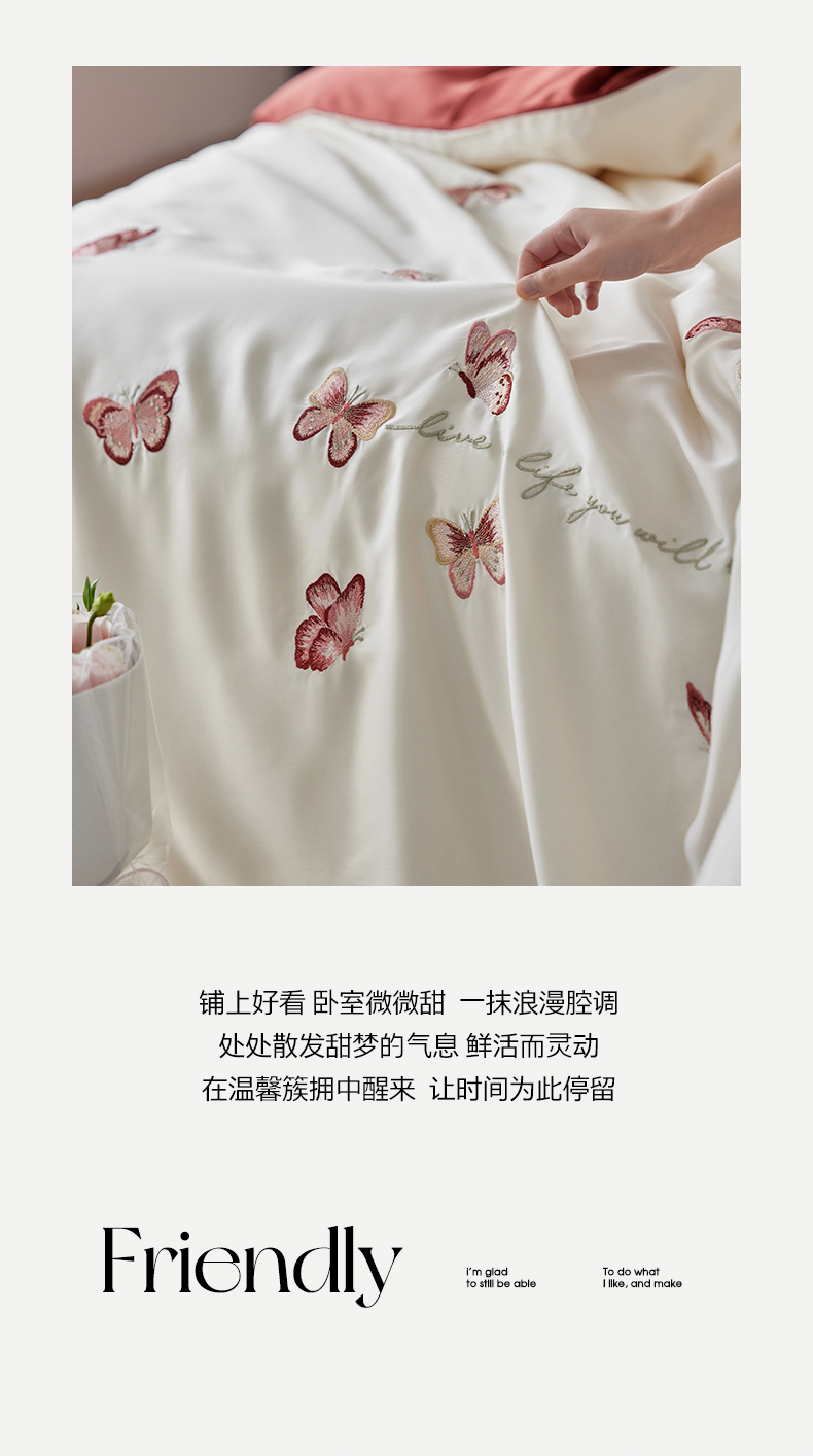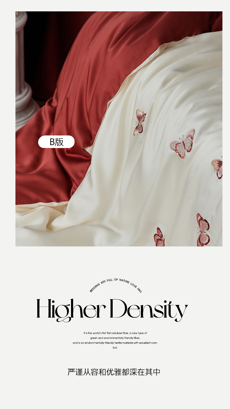 风向标家纺 奥地利进口兰精天丝绣花四件套-红色系列 绮梦红蝶