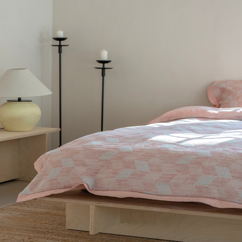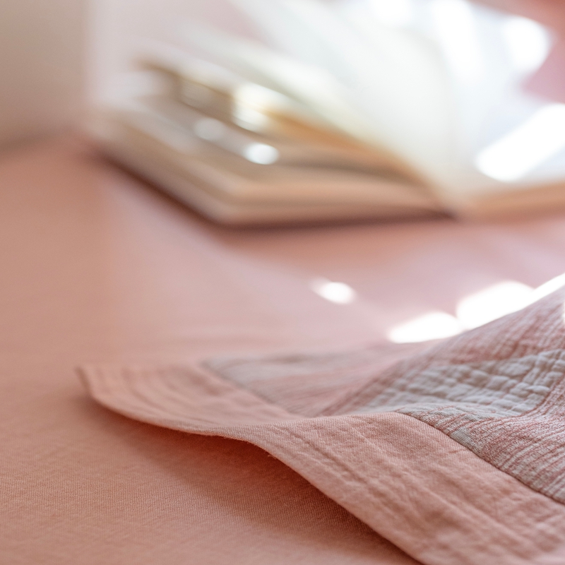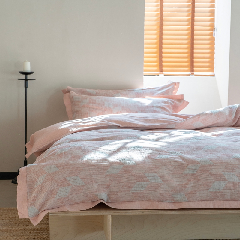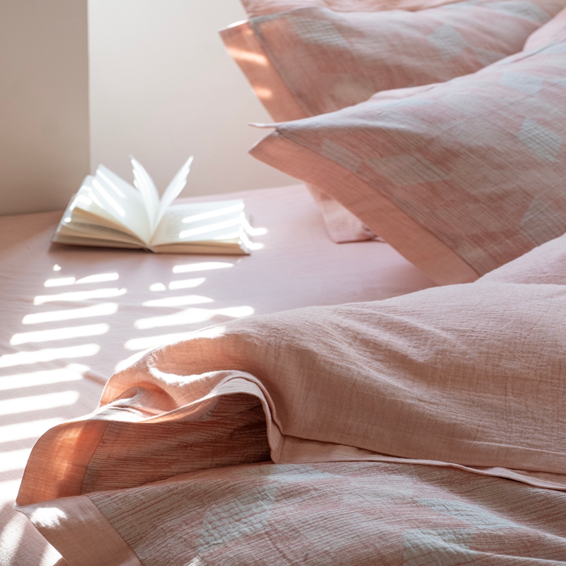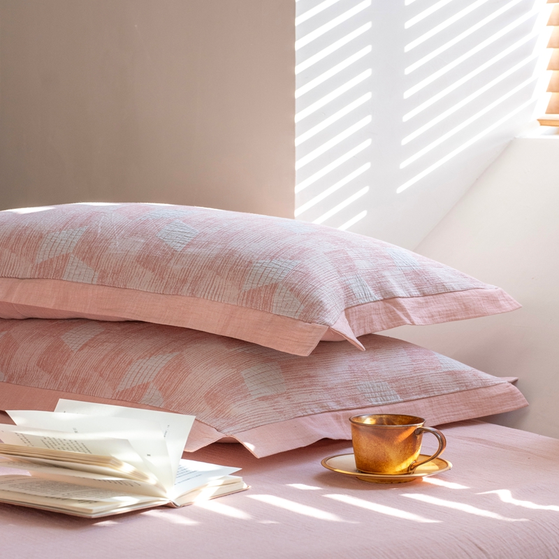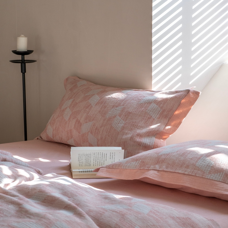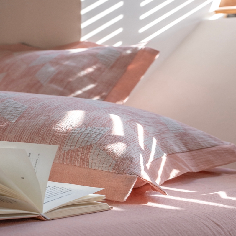 商品名称:璞素2025新款全棉色织三层纱四件套 粉色