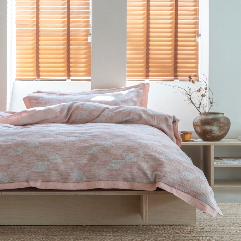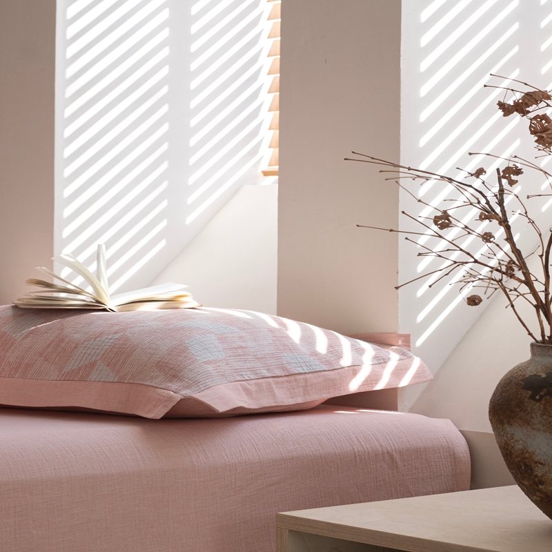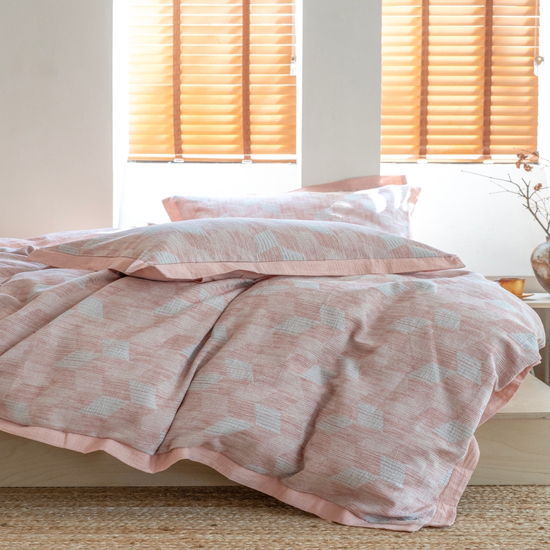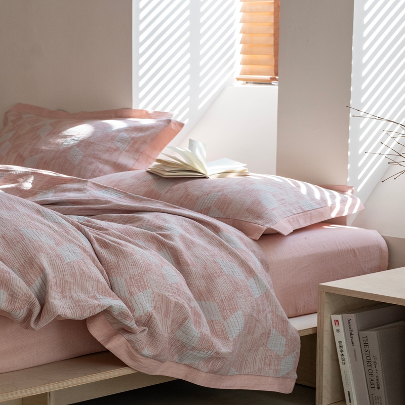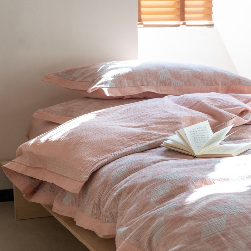 璞素2025新款全棉色织三层纱四件套 粉色