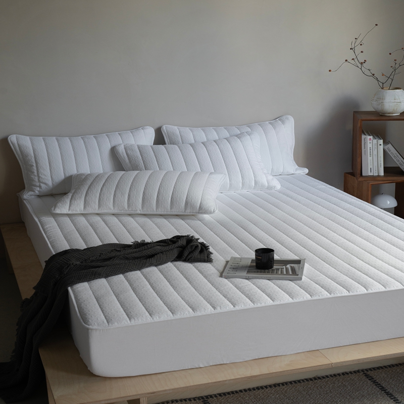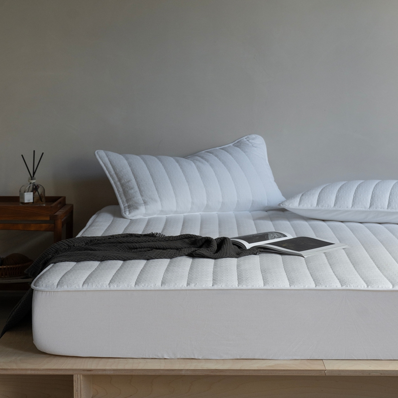 (总)璞素2025新款全棉色织三层纱床盖三件套-落雪,落雪白,落雪灰,落雪咖