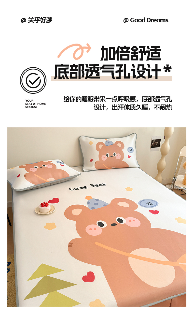 莱米家纺 2025春夏新款大版碳光冰丝席凉席席子 乖乖熊