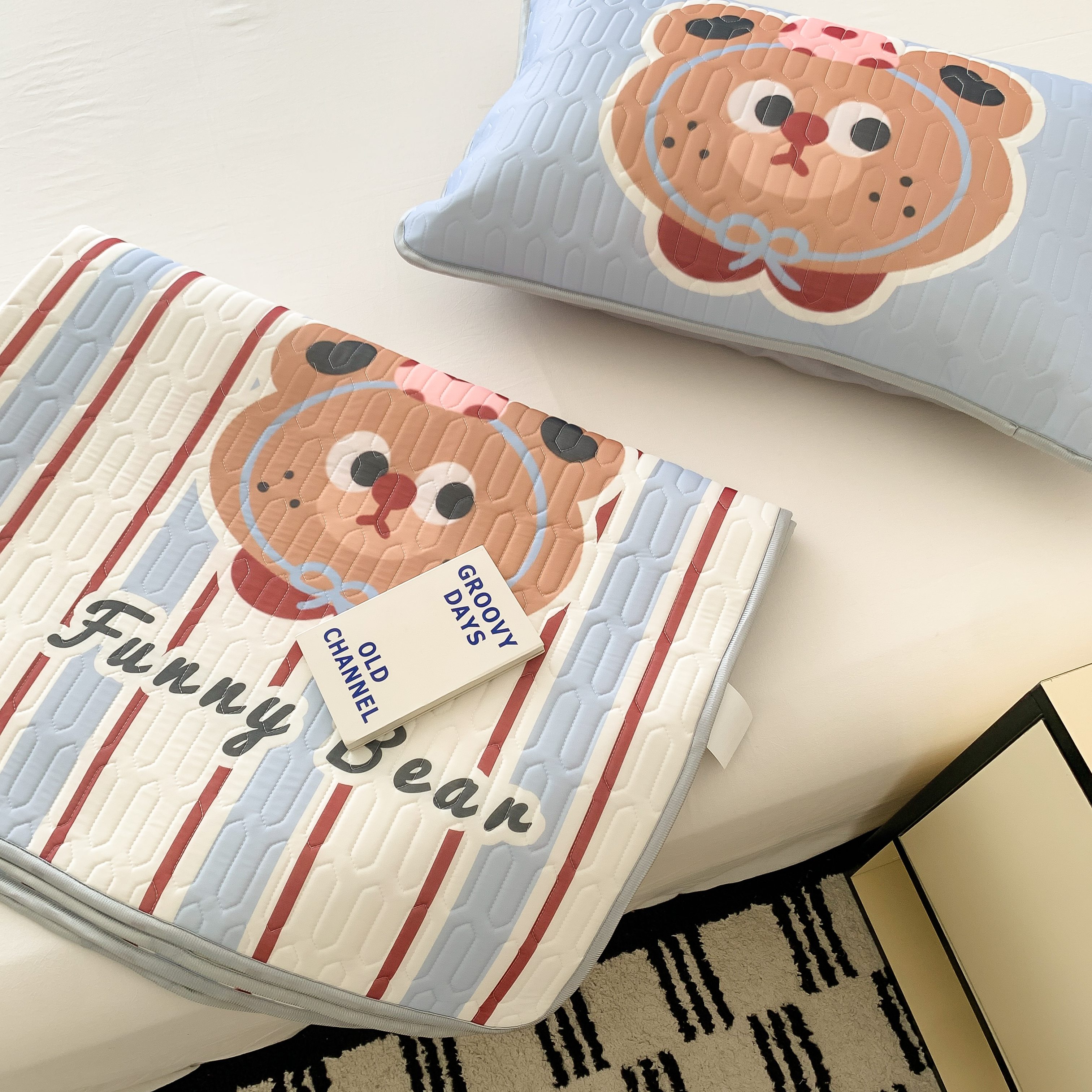 商品名称:顾里家纺 2025春夏新款ins卡通大版席凉席席子 蓝条小熊