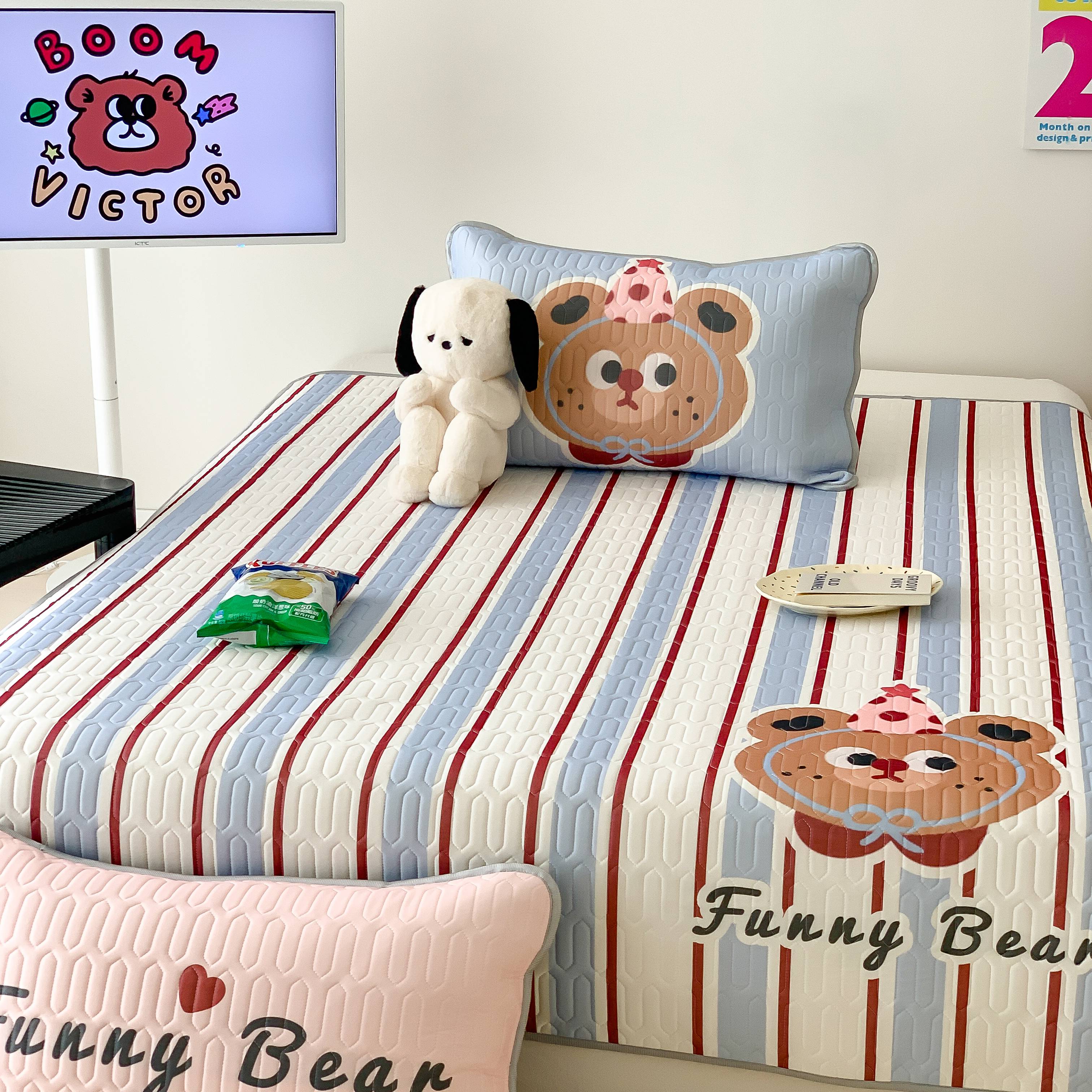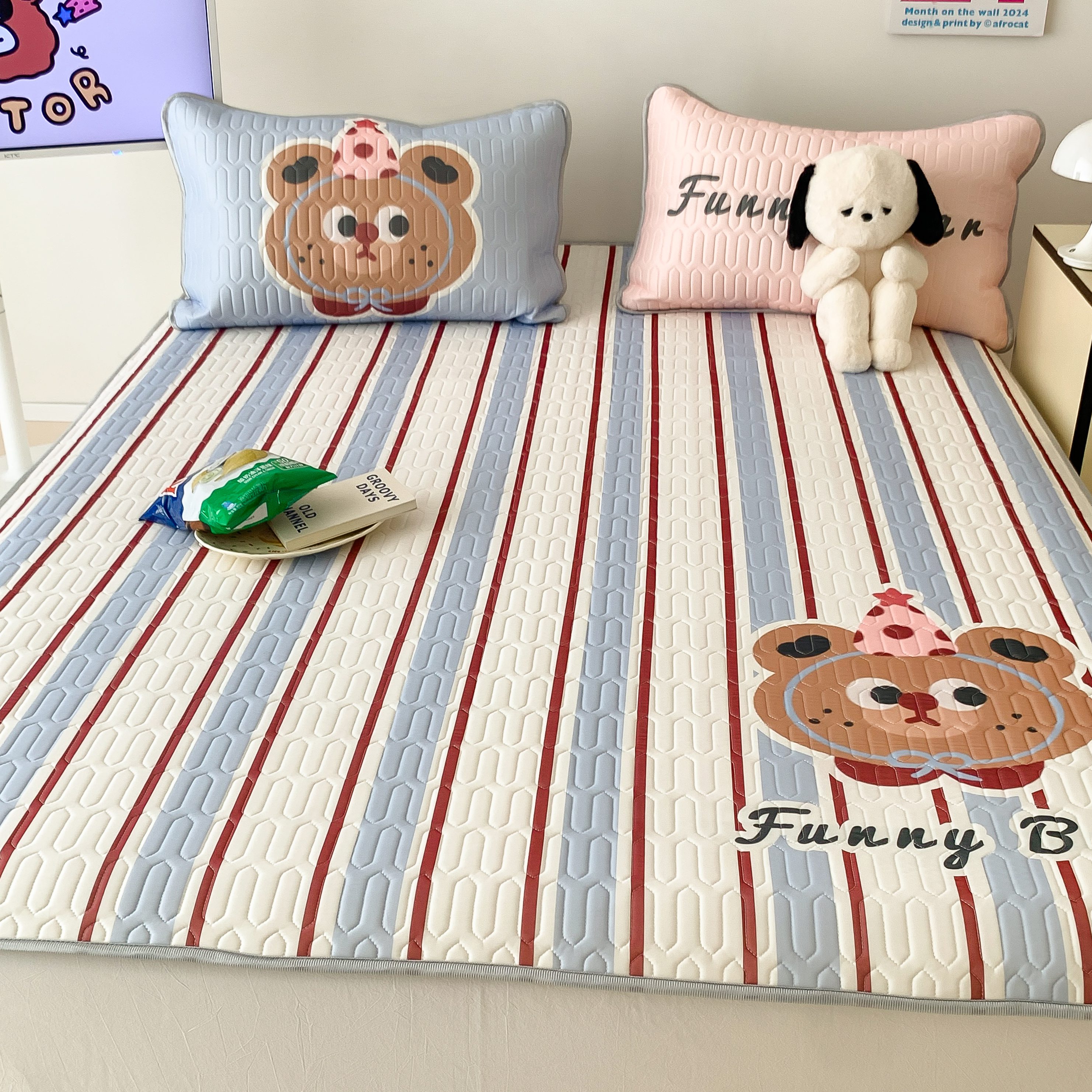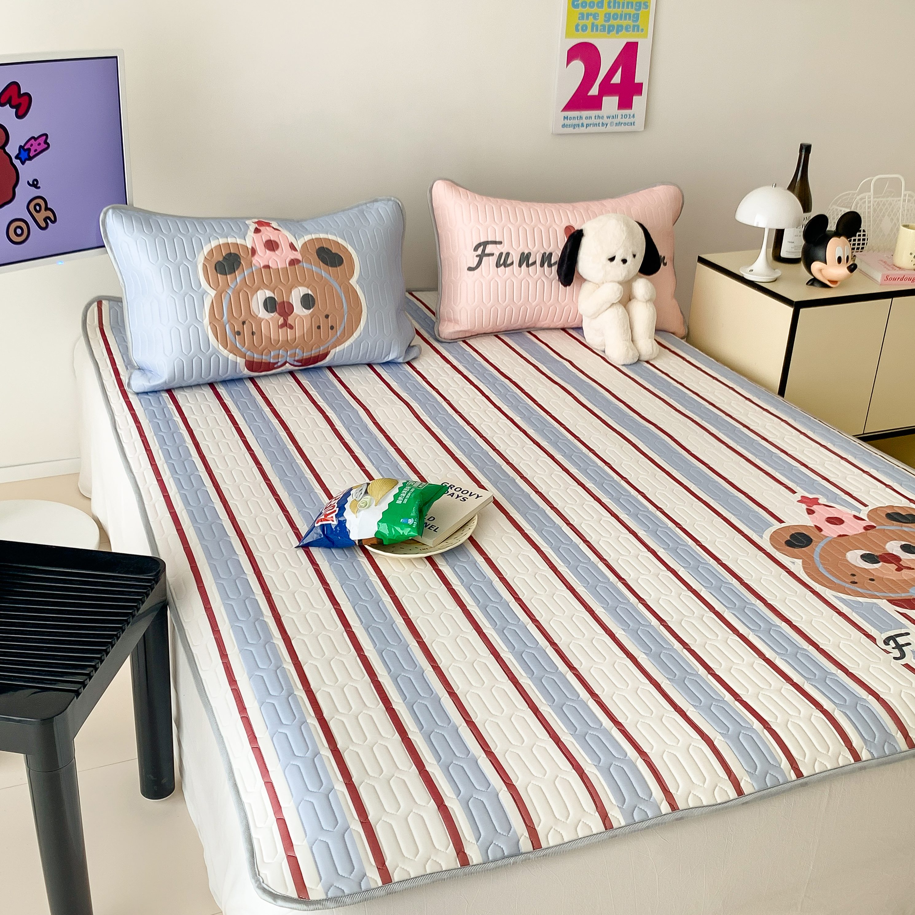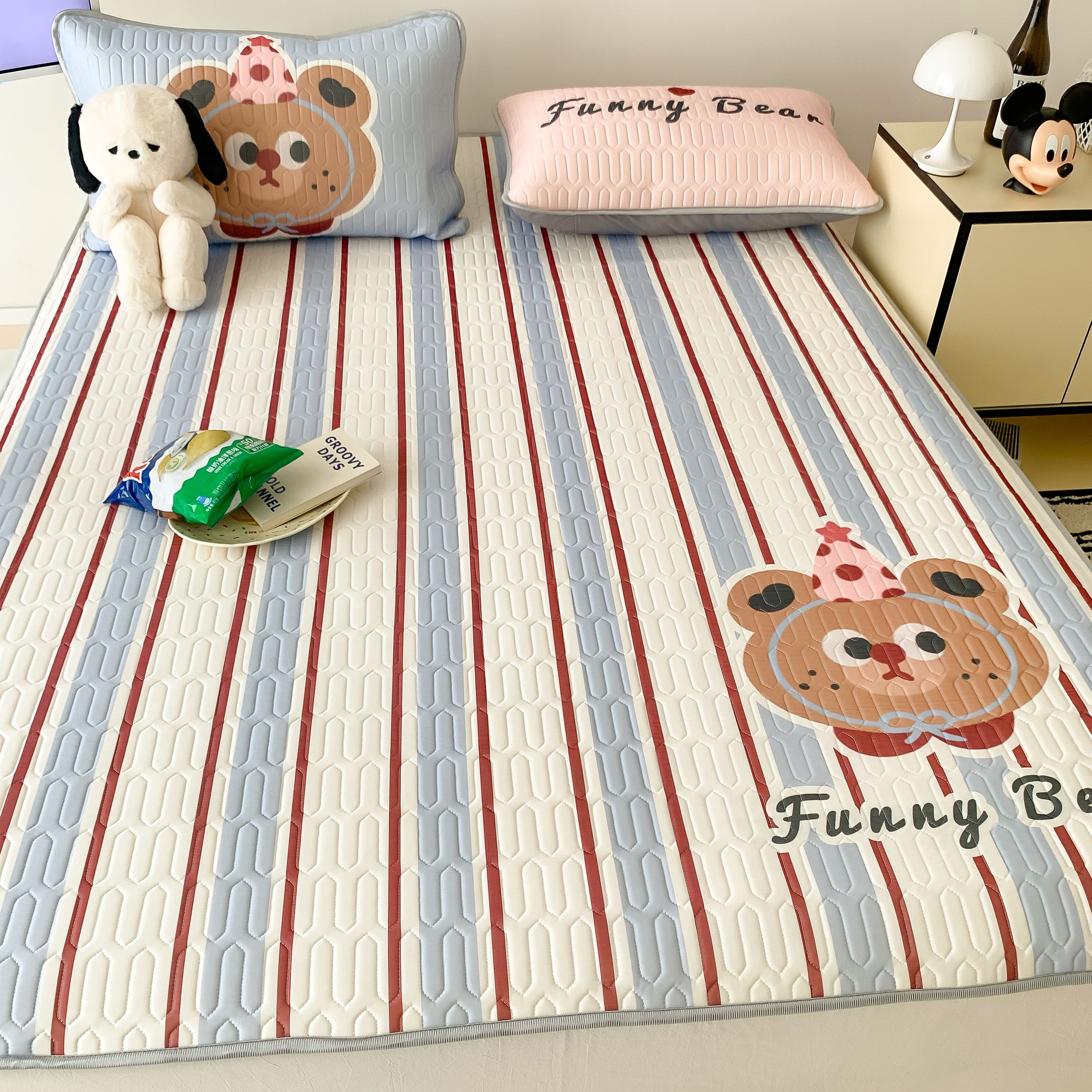 顾里家纺 2025春夏新款ins卡通大版席凉席席子 蓝条小熊