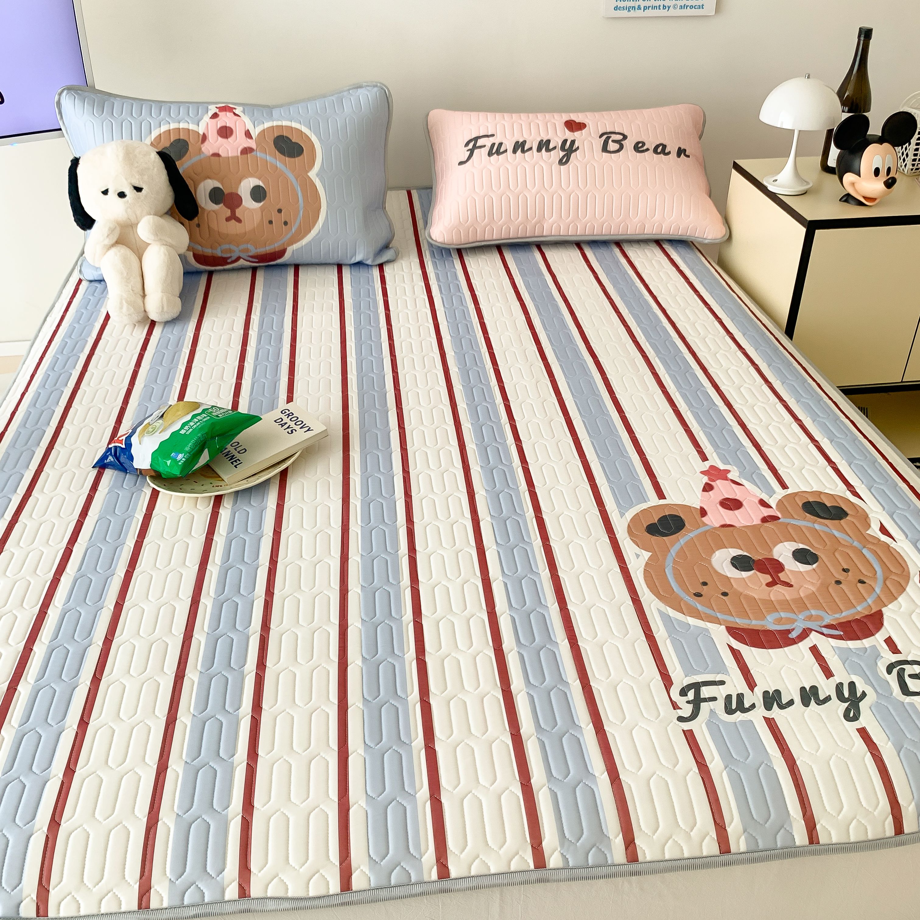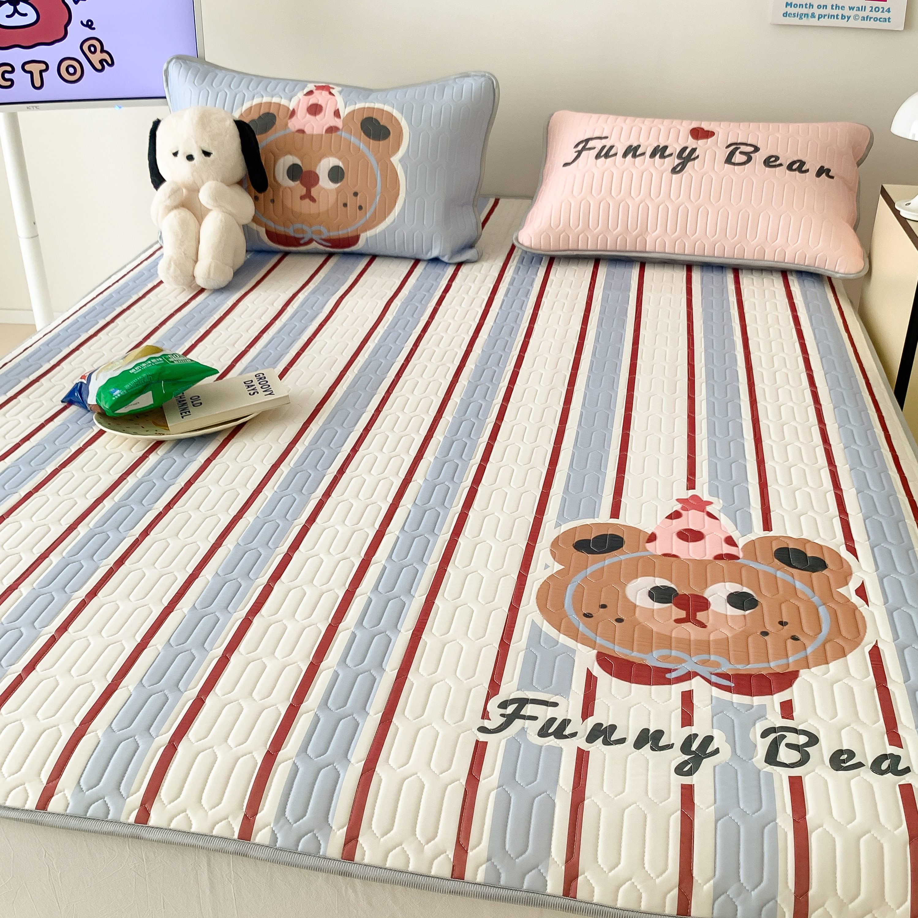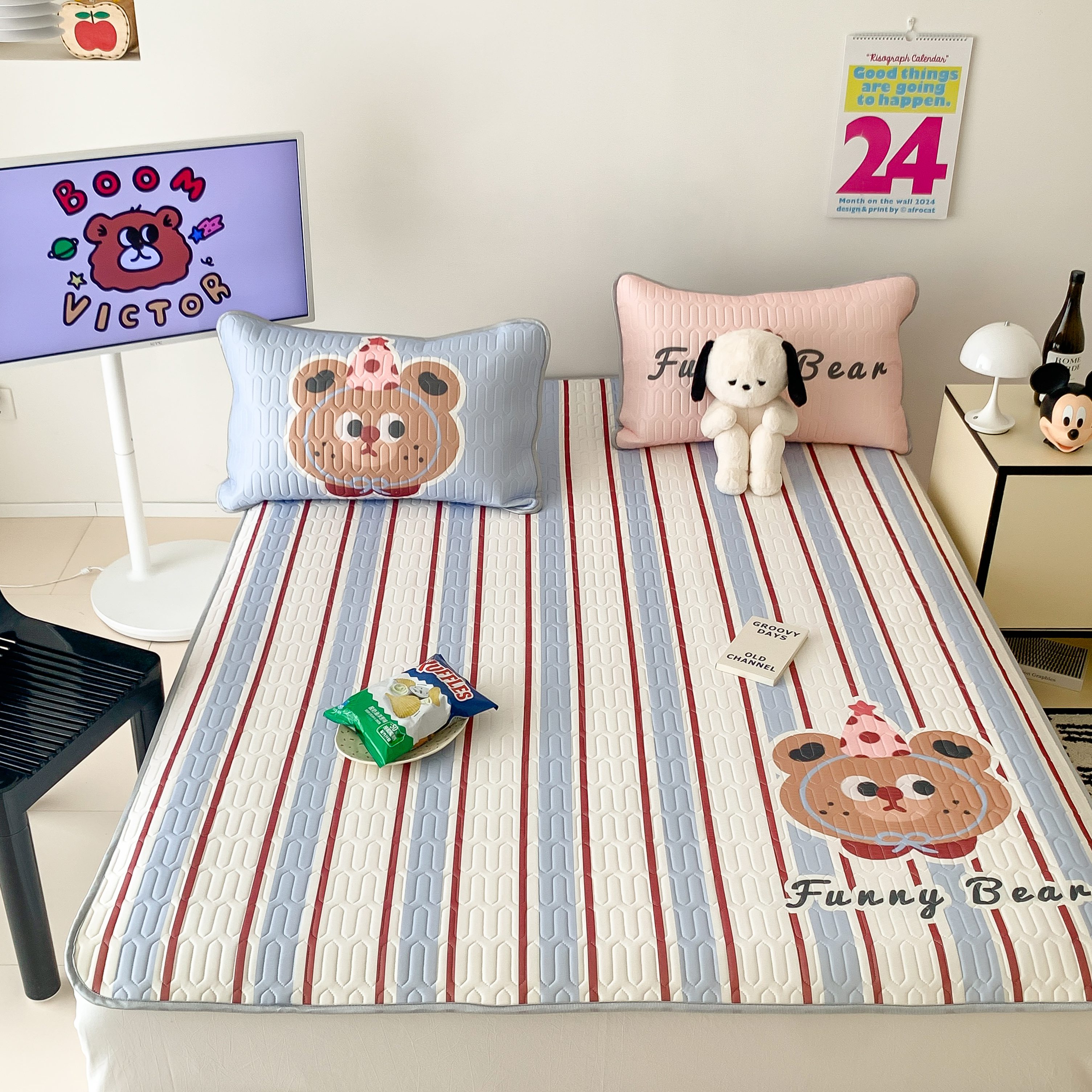 顾里家纺 2025春夏新款ins卡通大版席凉席席子 蓝条小熊