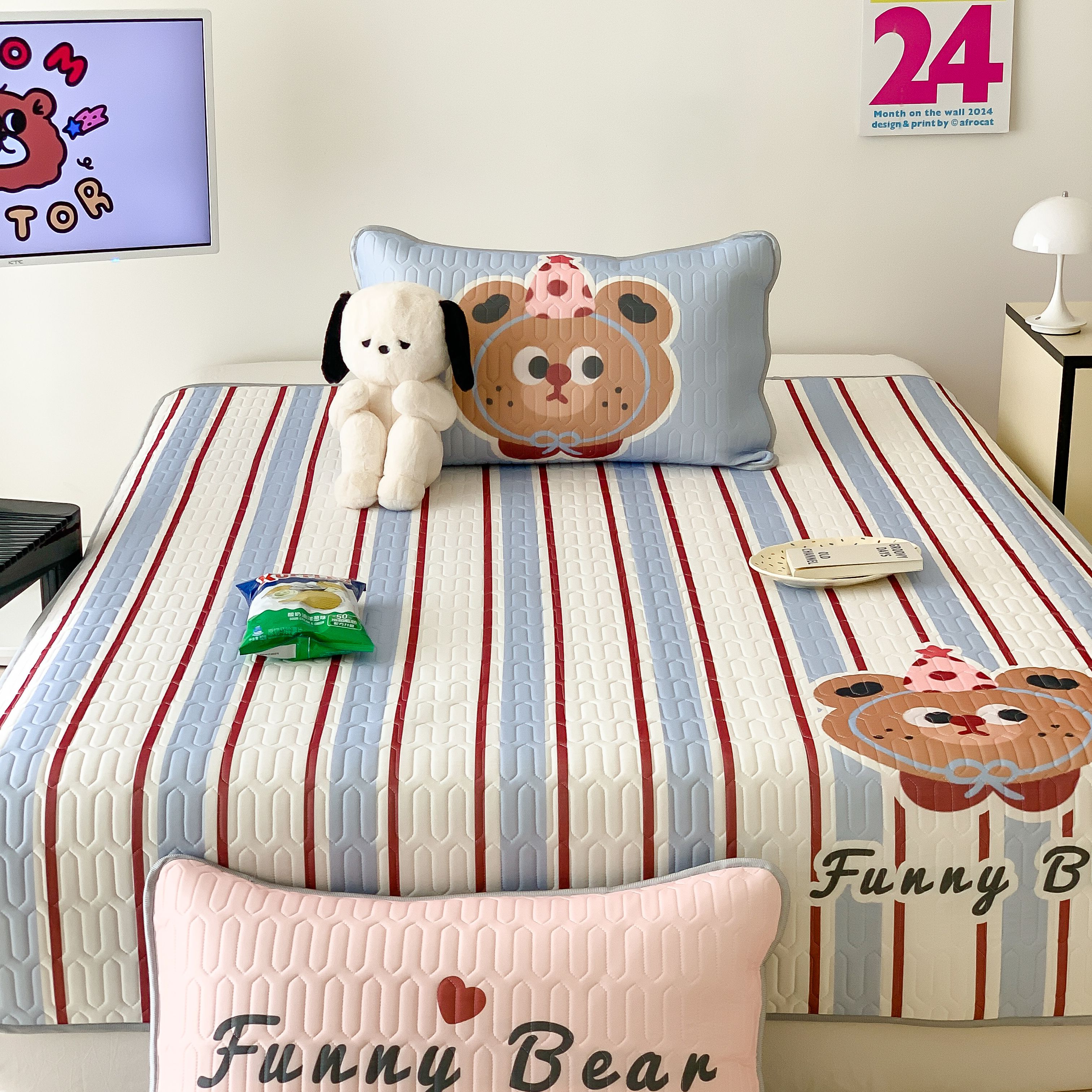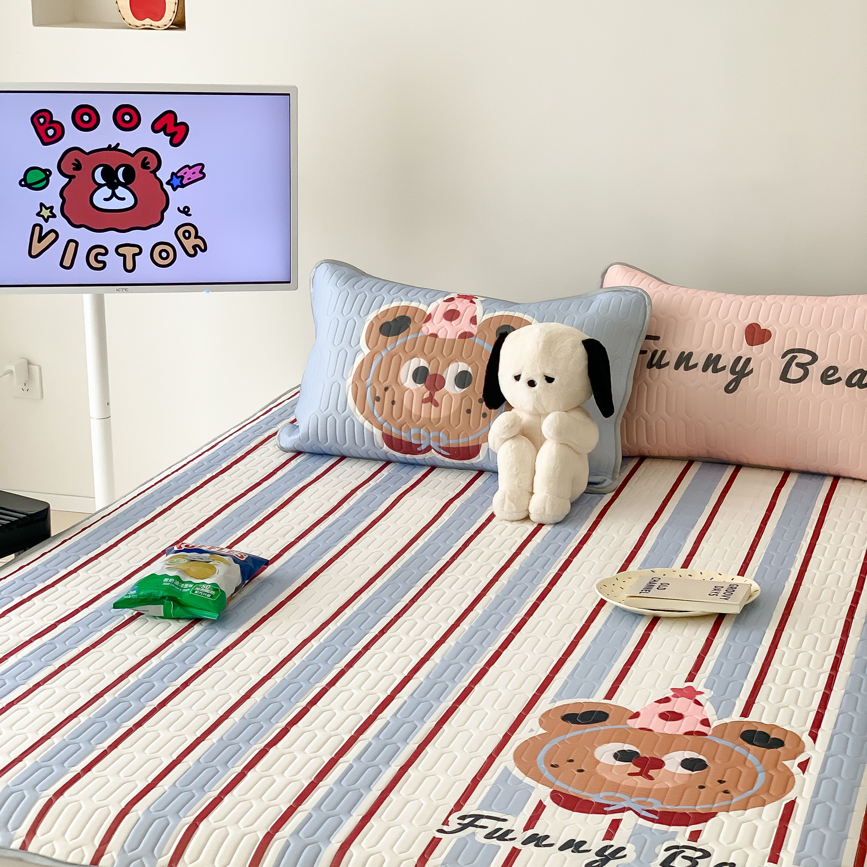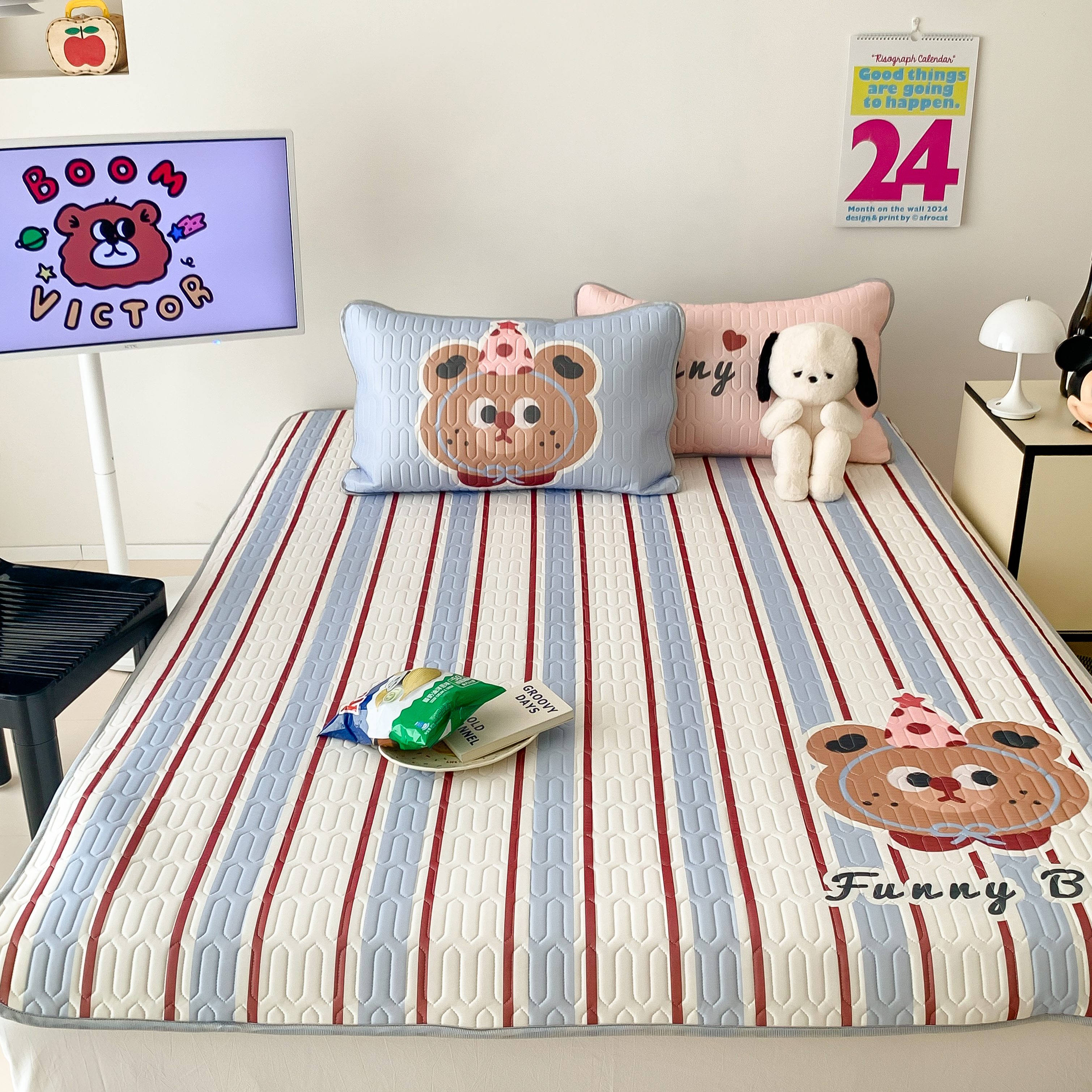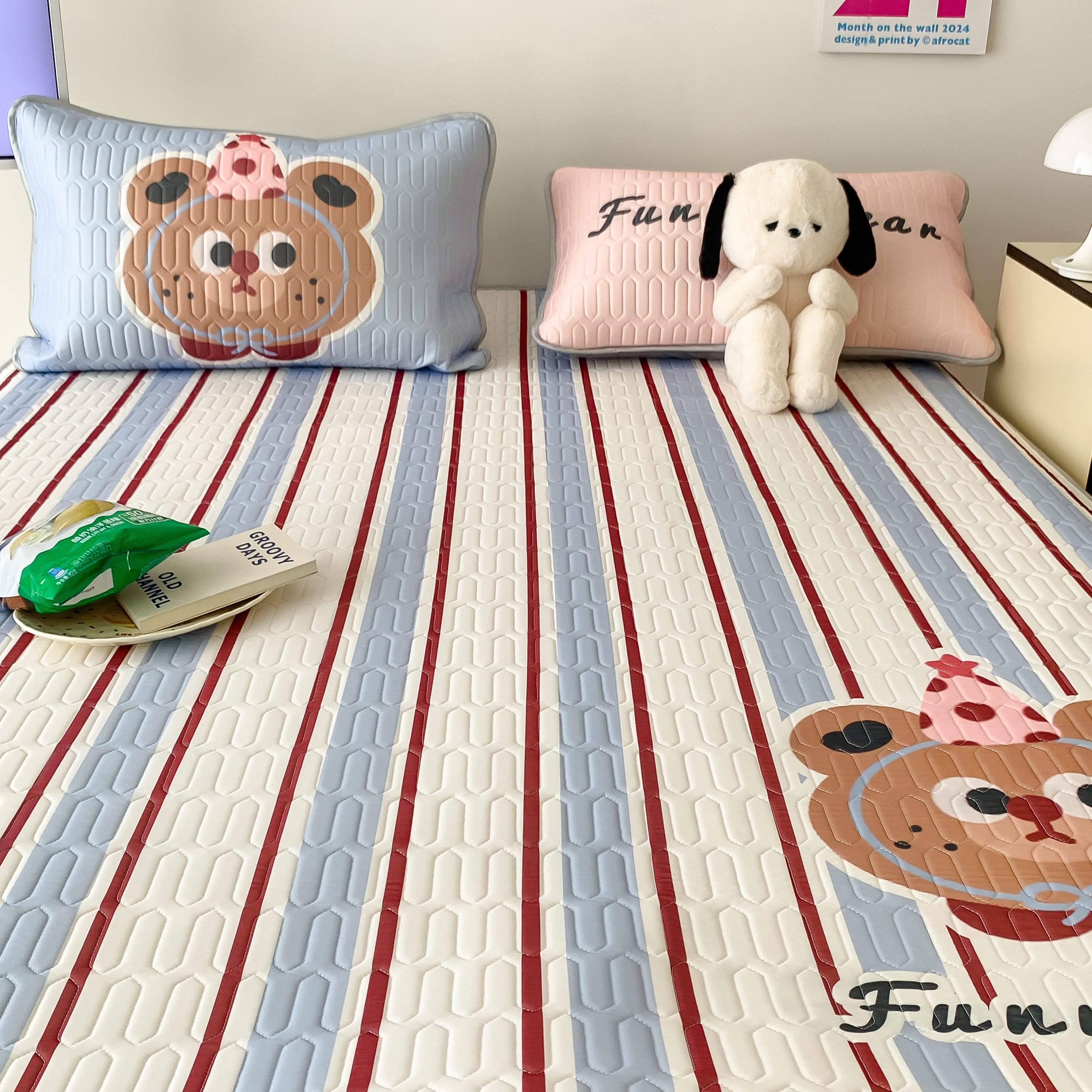 顾里家纺 2025春夏新款ins卡通大版席凉席席子 蓝条小熊