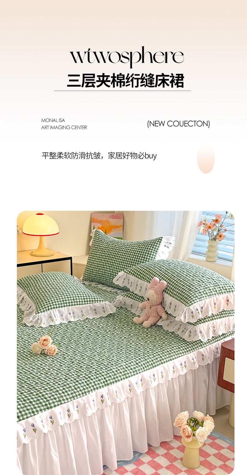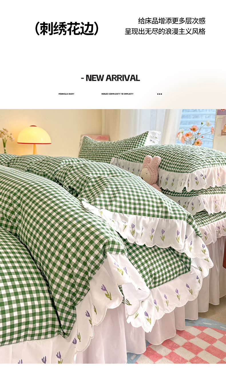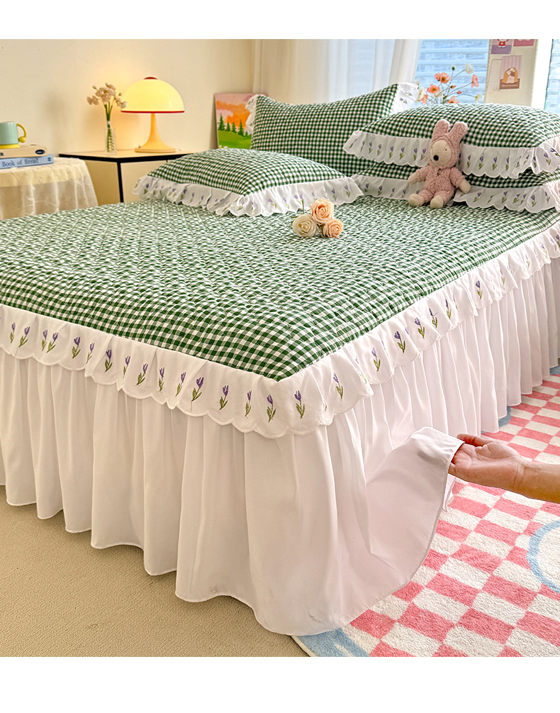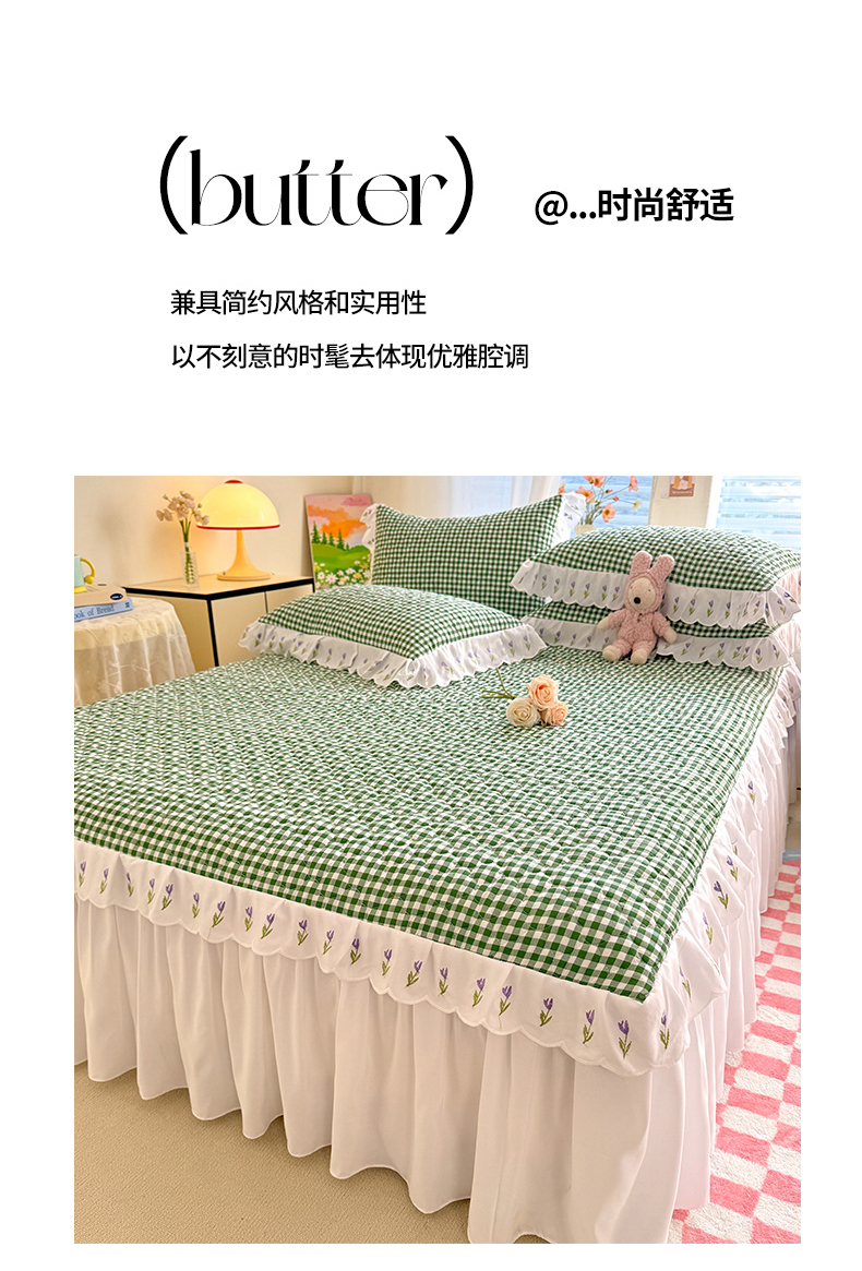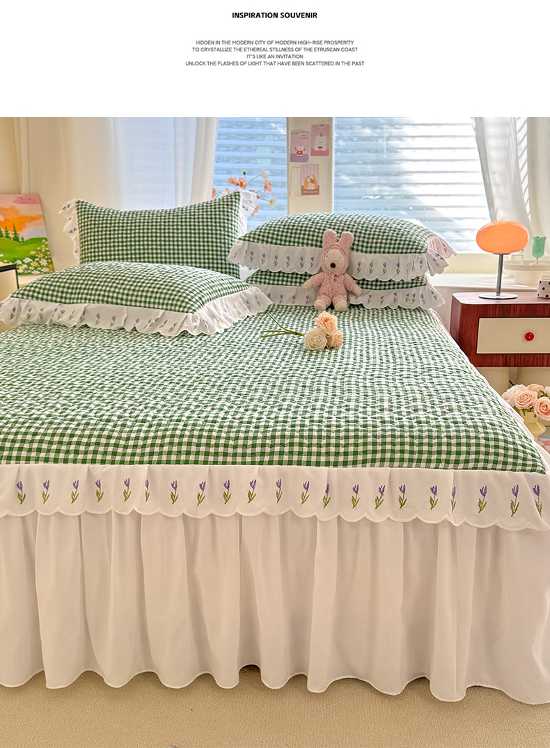 金盛皇朝家纺 2025新款格子空间水洗棉床裙 格子空间-牛油果绿