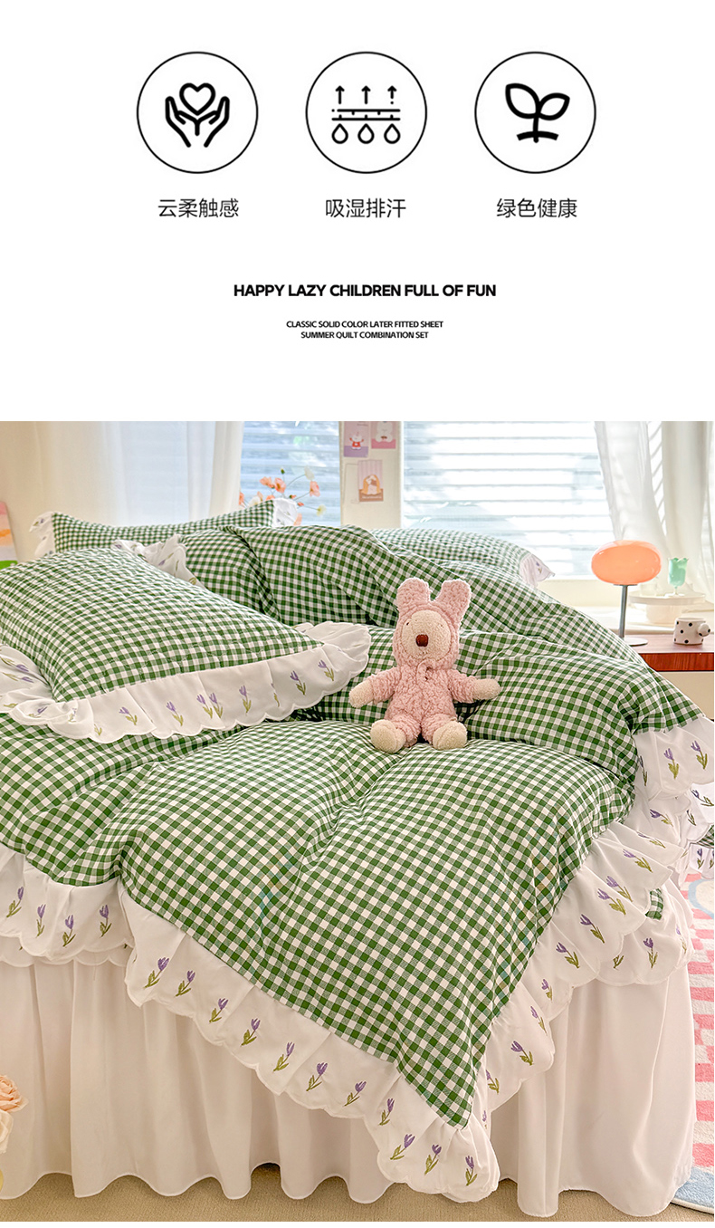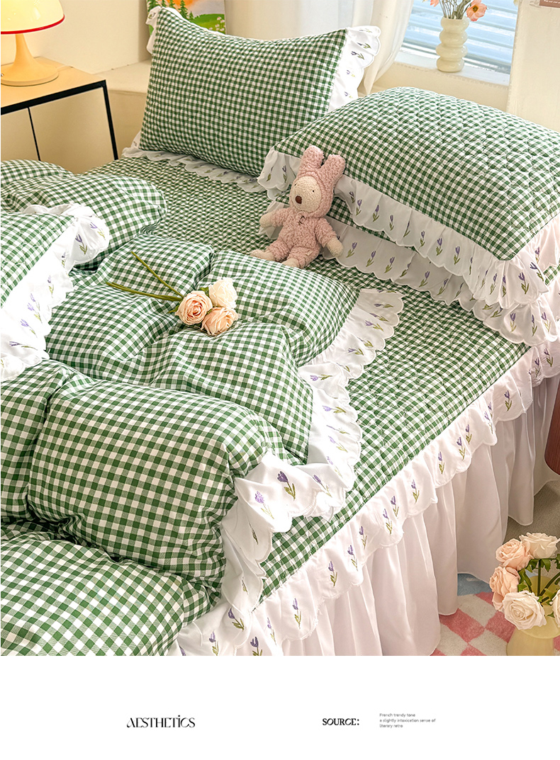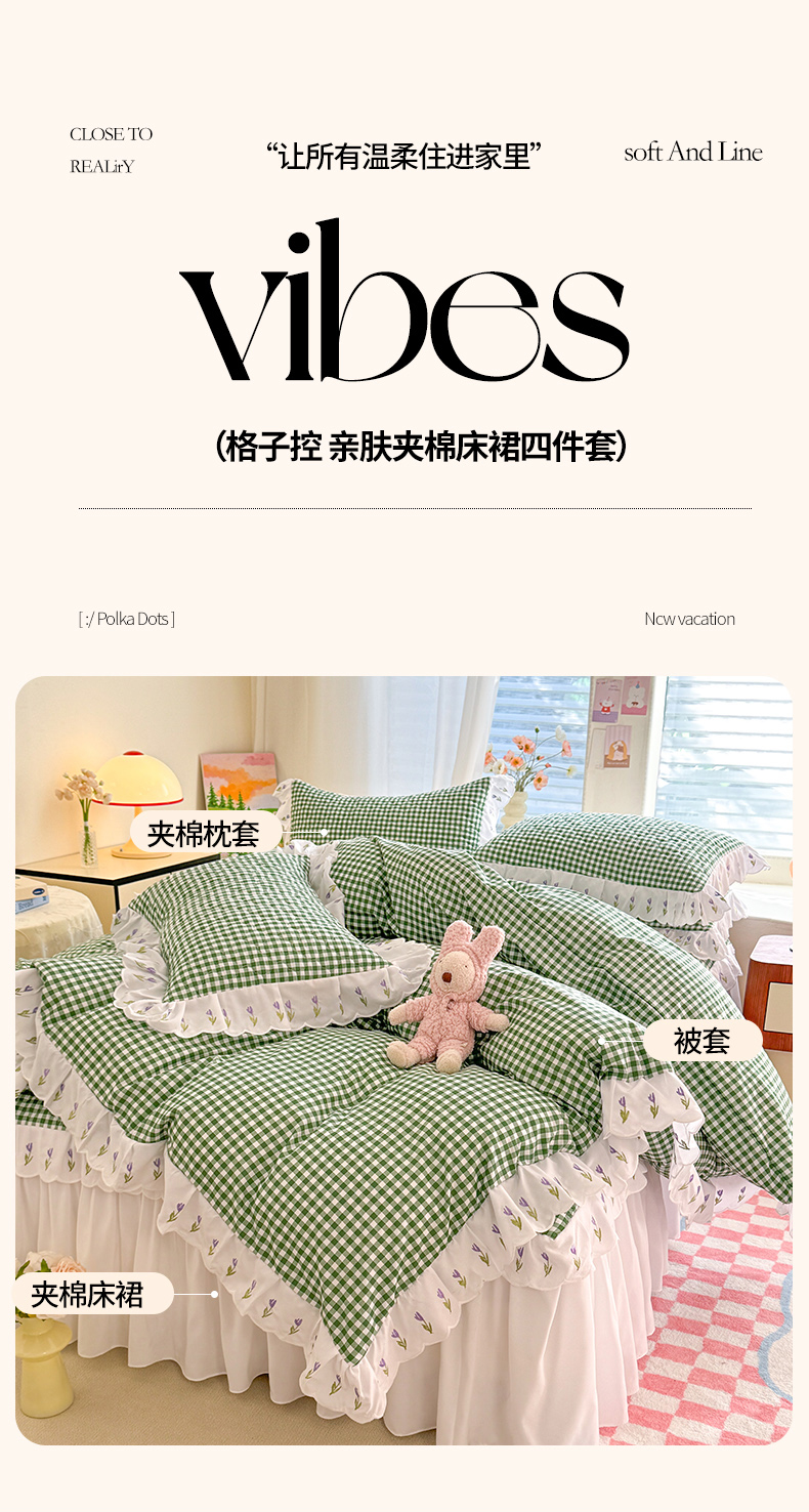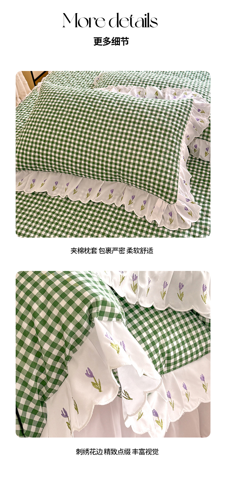 金盛皇朝家纺 2025新款格子空间水洗棉床裙 格子空间-牛油果绿