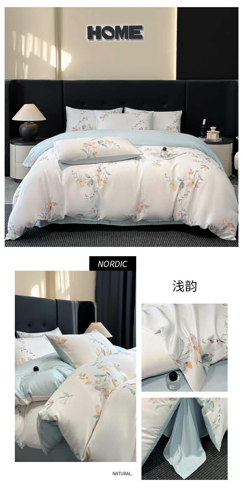 商品名称:慕晨 2025春夏新品莱赛尔天丝数码印花四件套莱赛尔夏被四件套天丝夏凉被直播热款 浅韵