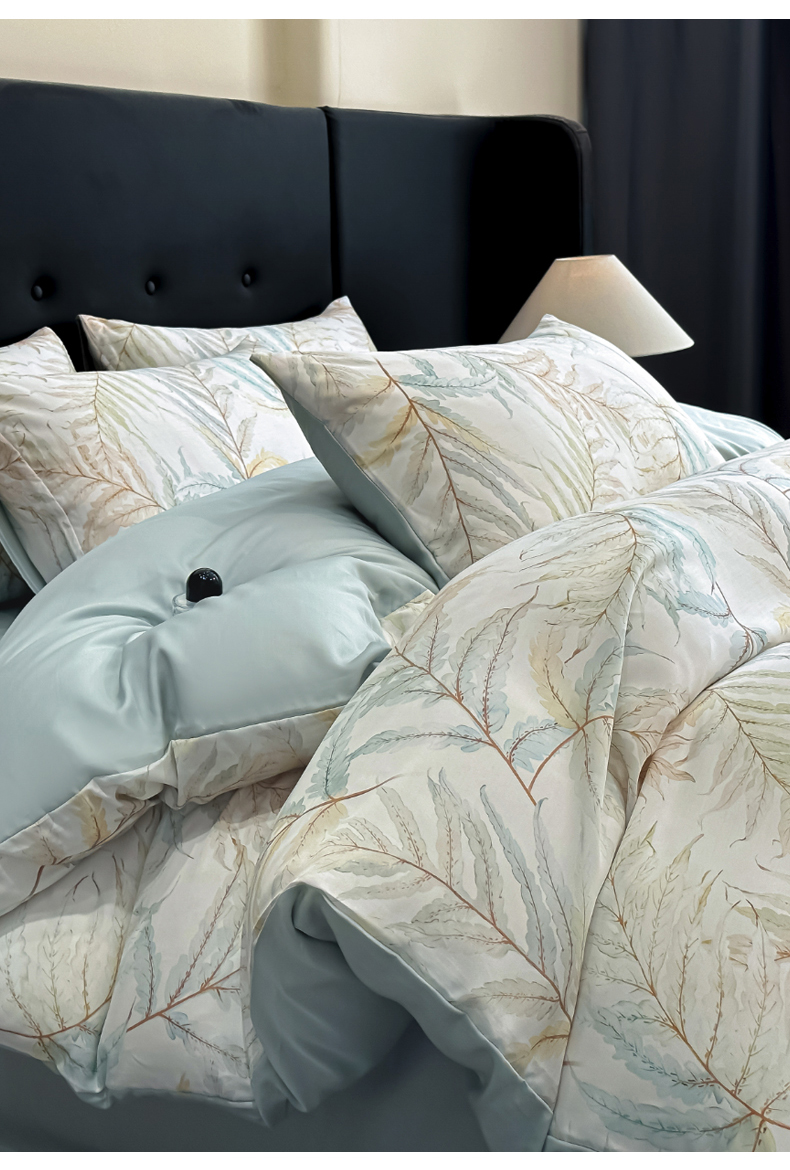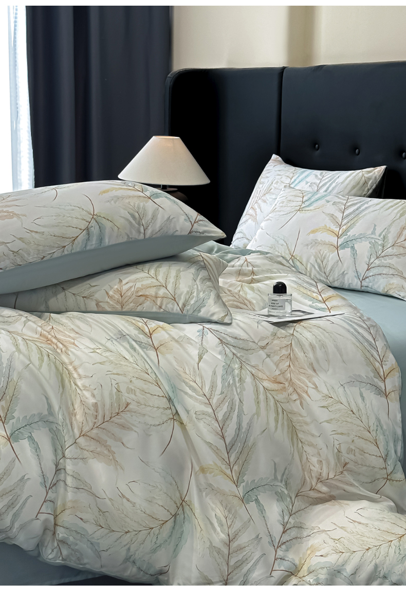 商品名称:慕晨 2025春夏新品莱赛尔天丝数码印花四件套莱赛尔夏被四件套天丝夏凉被直播热款 叶澜