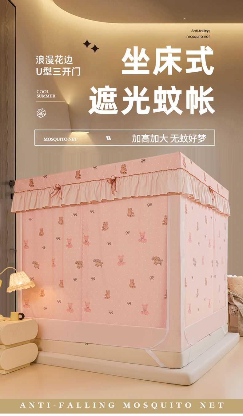 (总)锦逸家居 2025新款遮光防蚊坐床蚊帐加厚保暖夹棉蚊帐,萌萌熊,蝴蝶结派,可爱乐园,快乐好朋友
