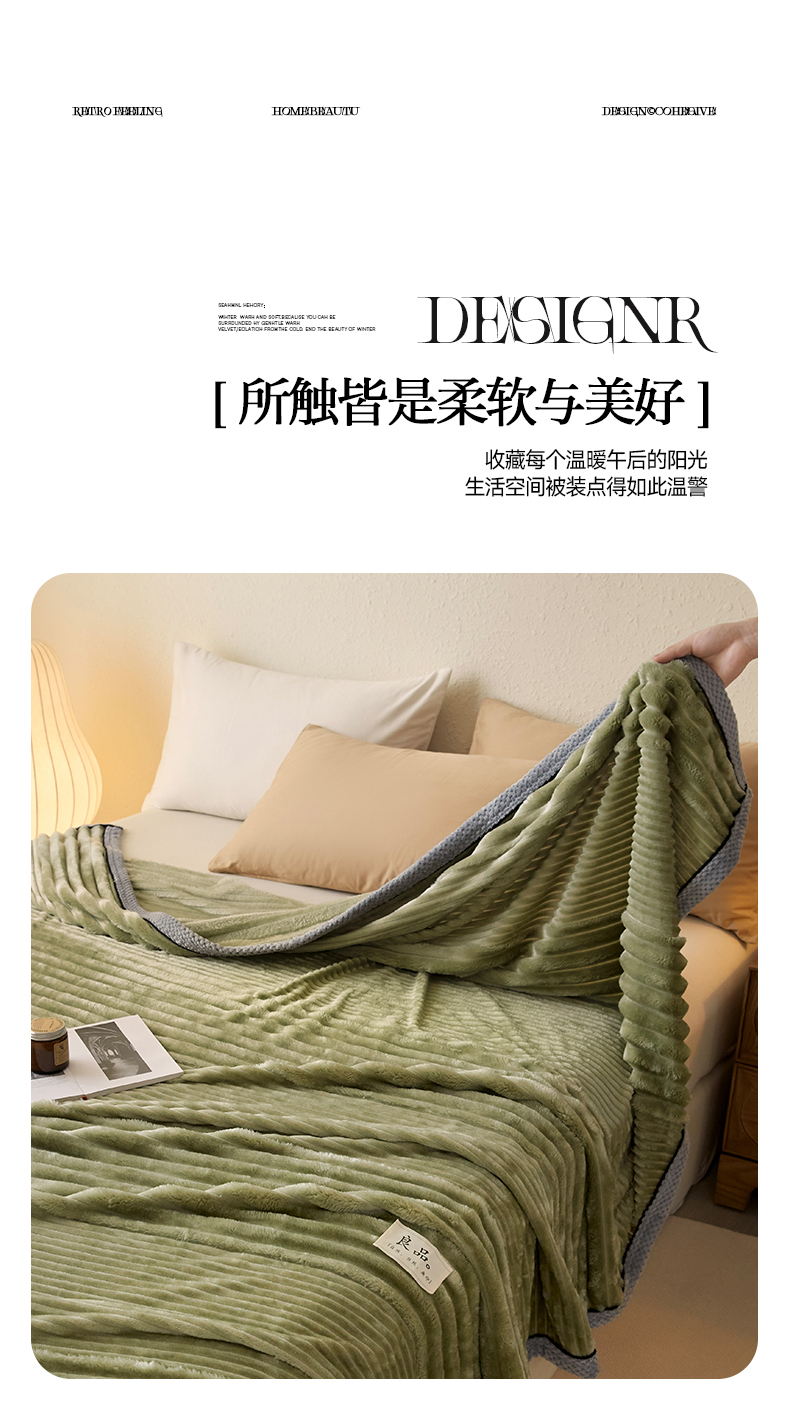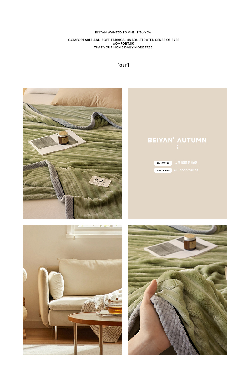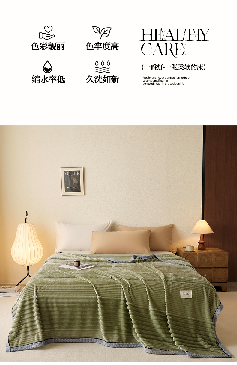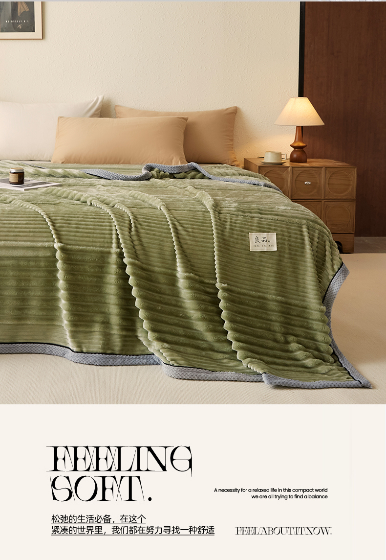 商品名称:澳梵家居 2025新款魔法绒糯糯绒提花抽条毛毯盖毯 简约-草绿