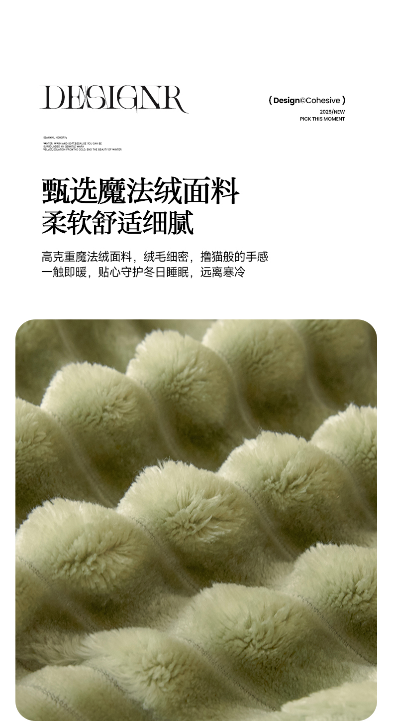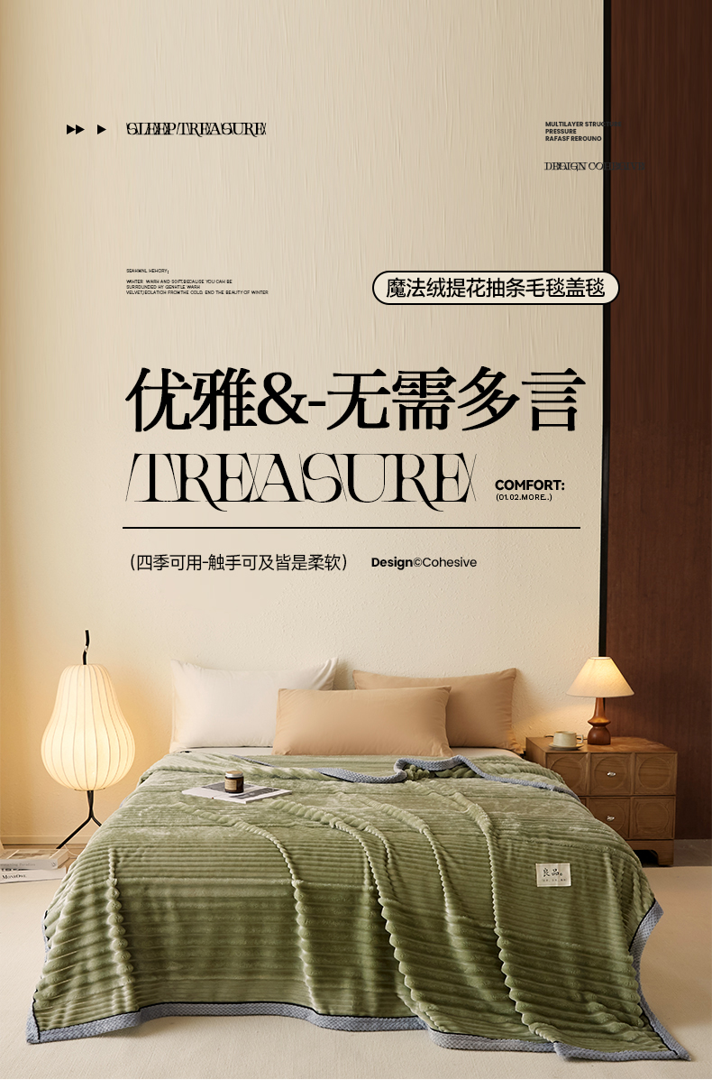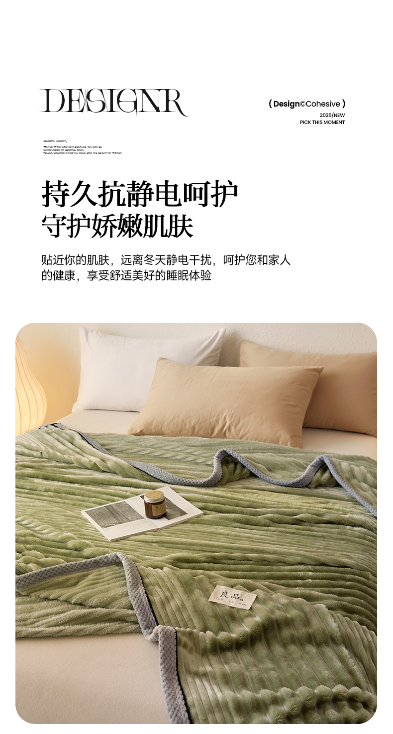 商品名称:澳梵家居 2025新款魔法绒糯糯绒提花抽条毛毯盖毯 简约-草绿