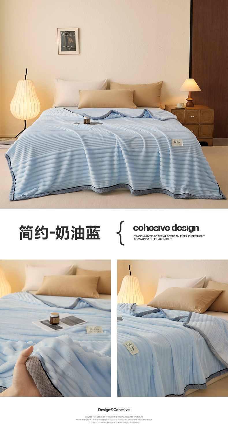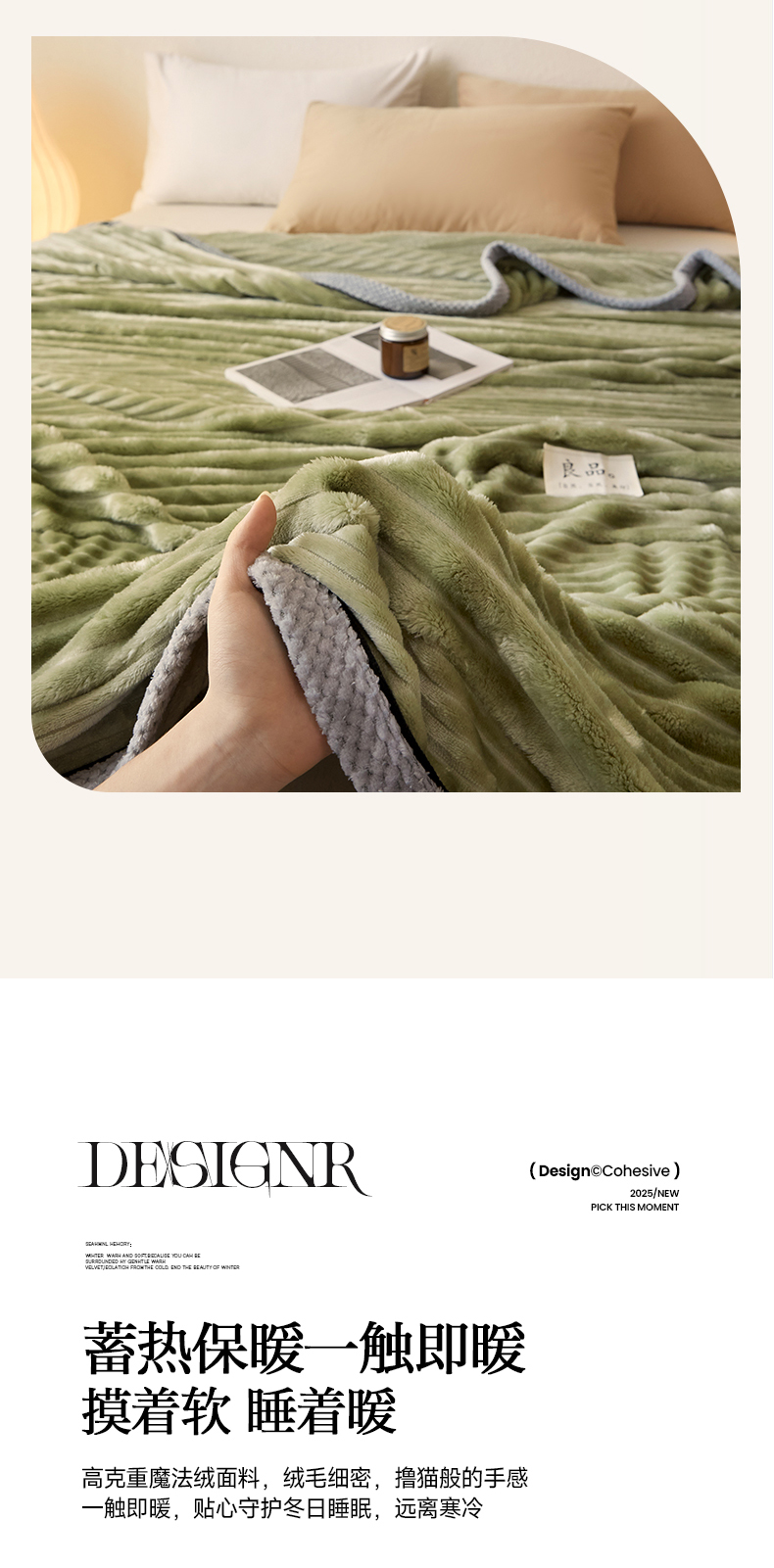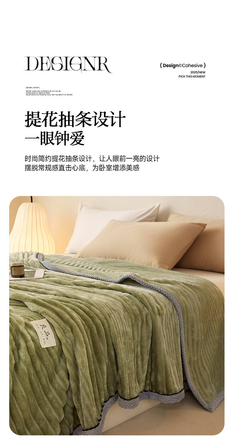 澳梵家居 2025新款魔法绒糯糯绒提花抽条毛毯盖毯 简约-草绿