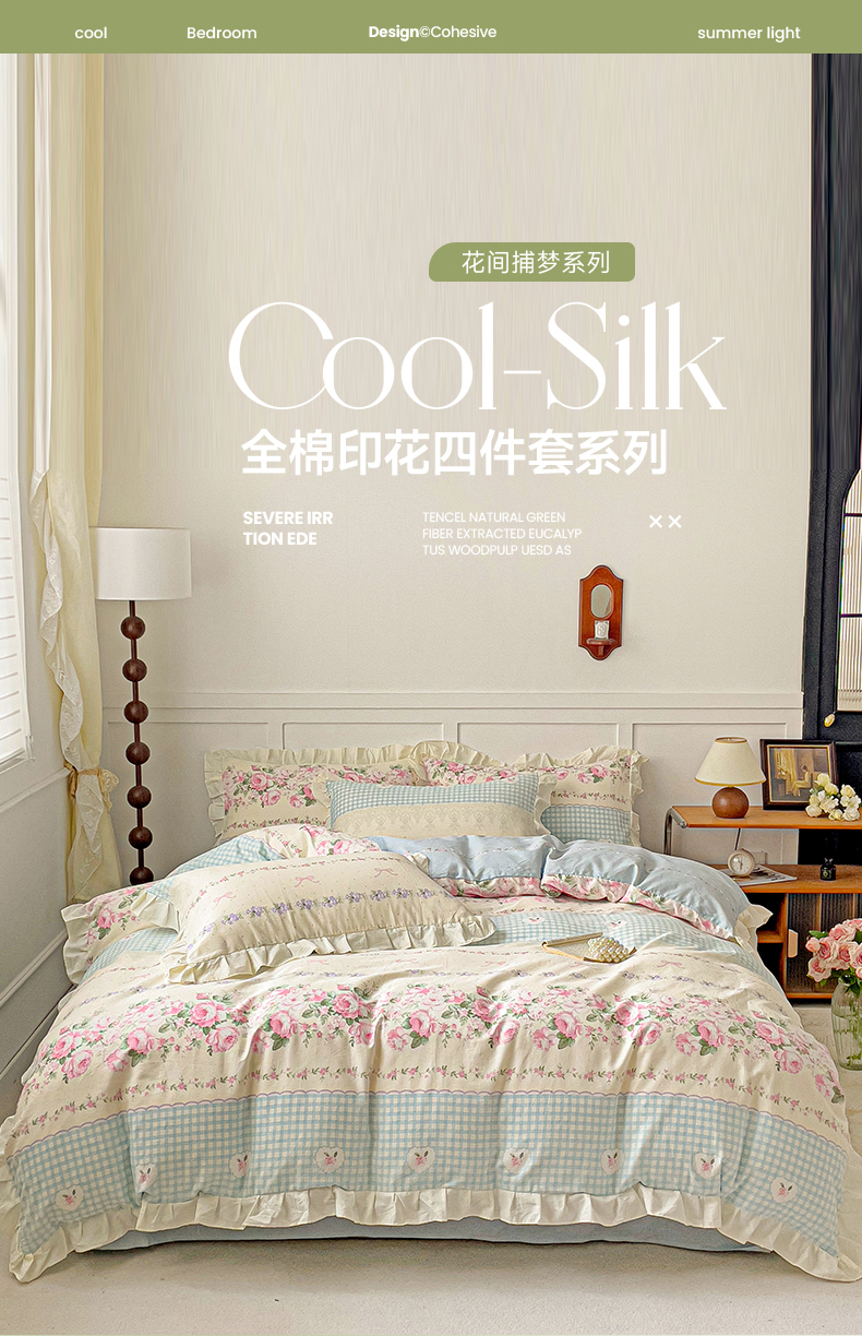 当前位置: 91家纺网 > 商品网购 > 床品套件 > 四件套 > 全棉普通四件套 > 澳梵家居 2025新款全棉印花韩版花间捕梦四件套 花间捕梦
