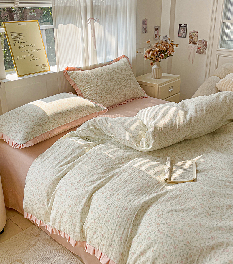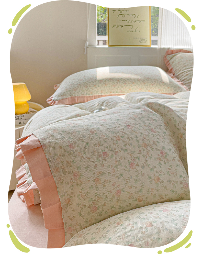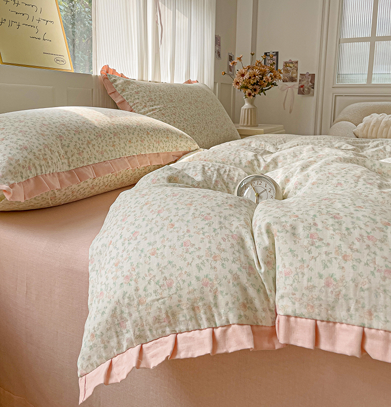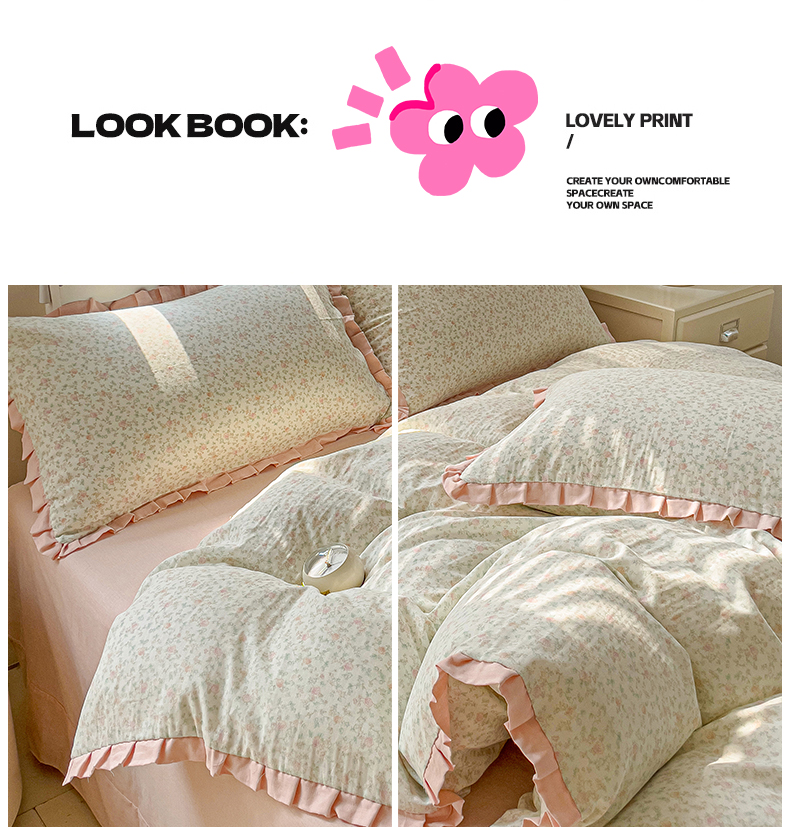商品名称:忆生活家纺 2025新款全棉韩版双层纱花边款四件套 伊洛娜