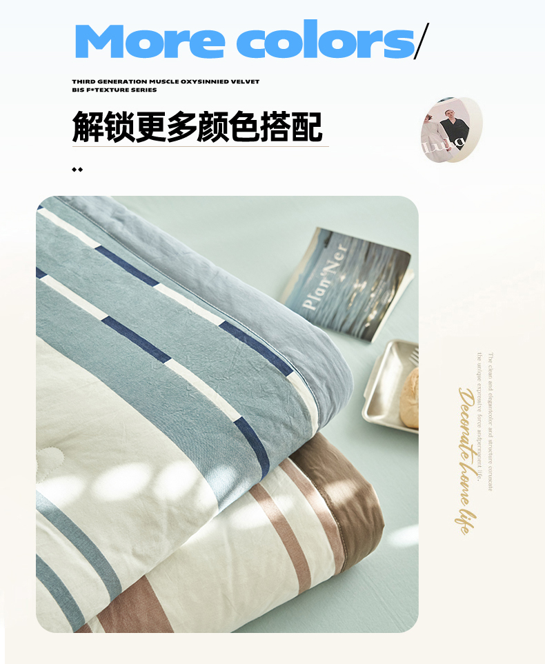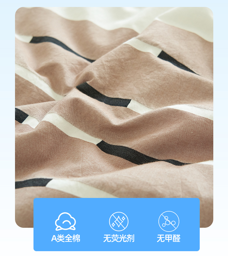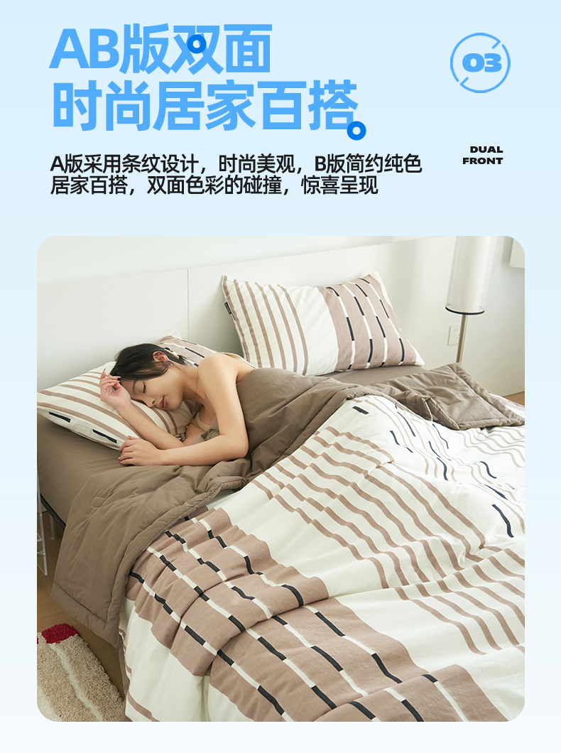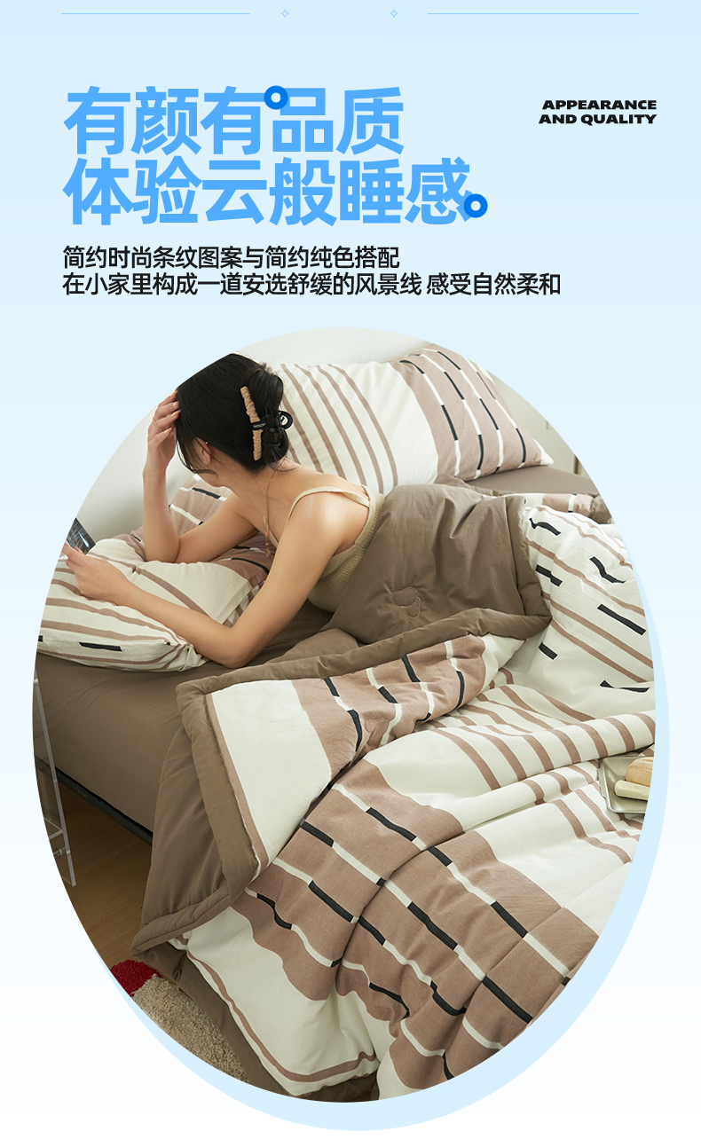 当前位置: 91家纺网 > 商品网购 > 床品套件 > 四件套 > 夏被四件套 > 金鹰 2025新款A类纯棉水洗棉三层条纹提花大豆夏被四件套 条纹-浅驼
