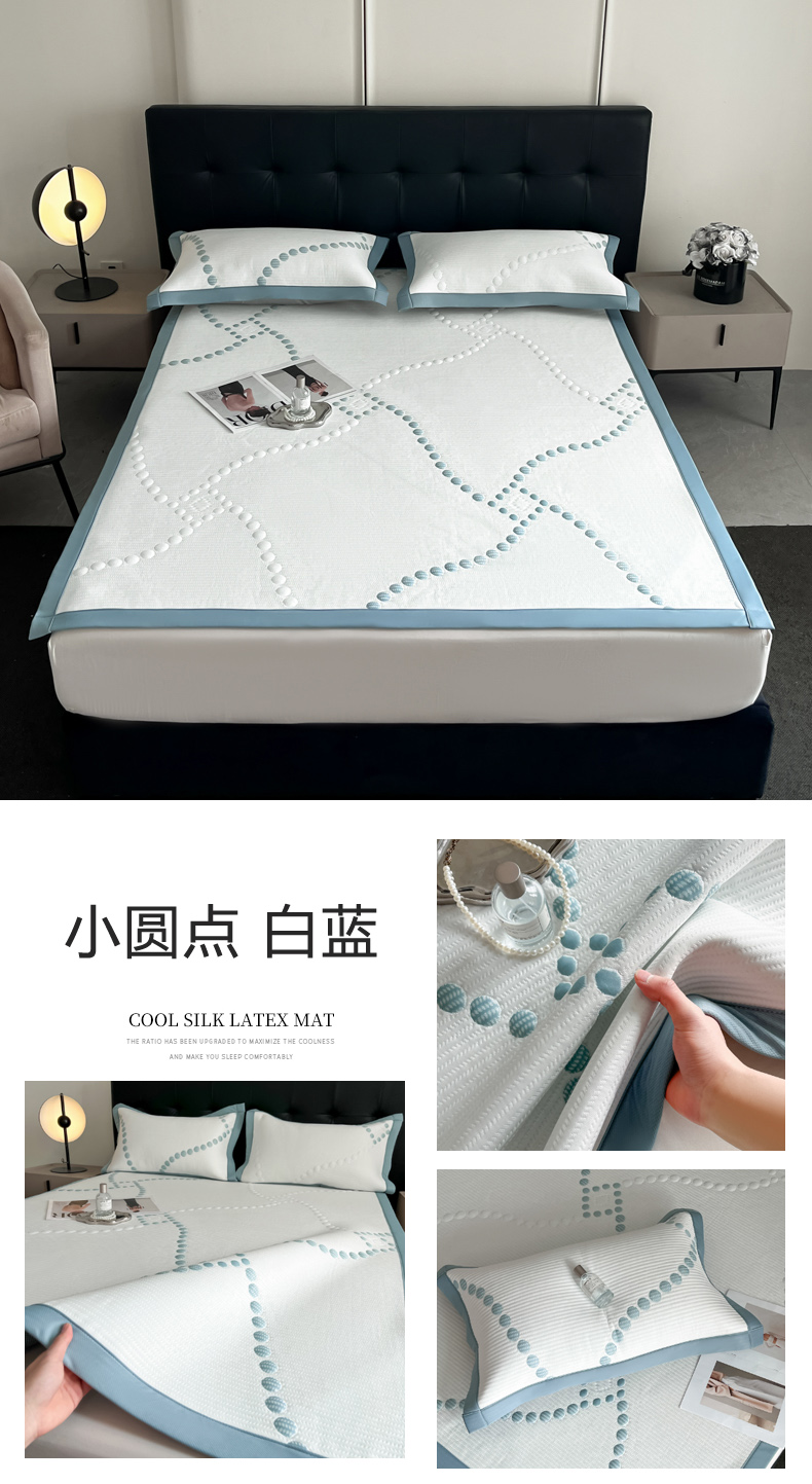 商品名称:慕尚家纺 2025新款泡泡大PE提花软席 小圆点 白蓝