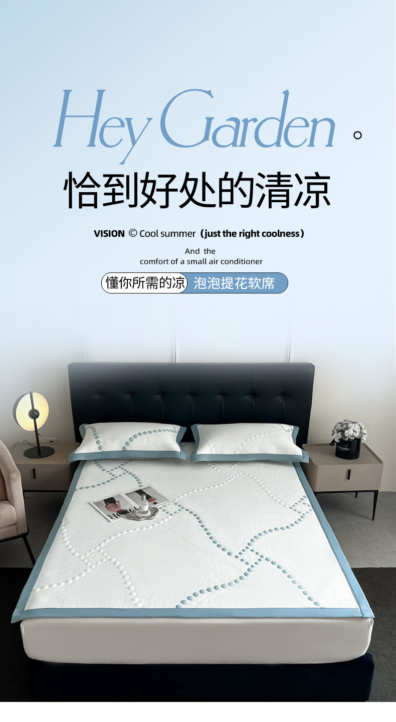 (总)慕尚家纺 2025新款泡泡豆豆席大pe提花席,交织 白蓝,交织 灰,条纹 绿,小灰格,小桃心 白绿,小圆点 白蓝