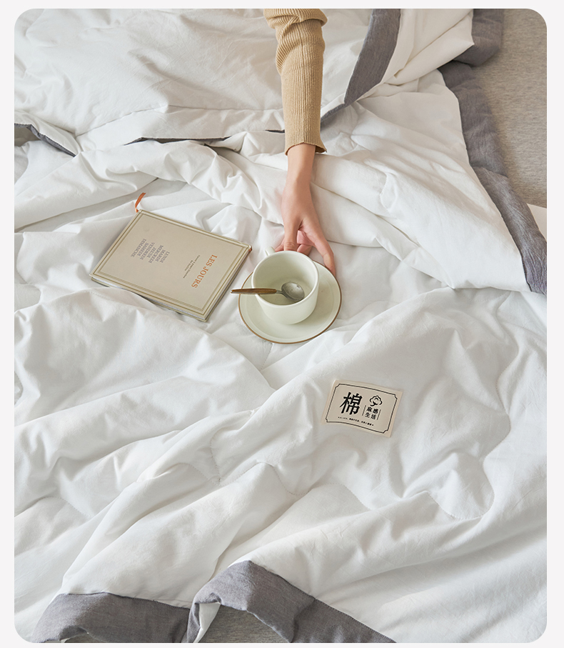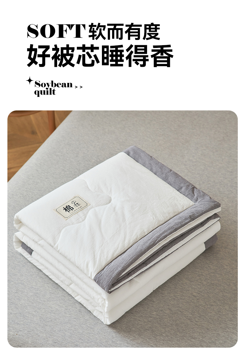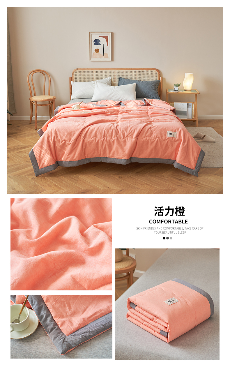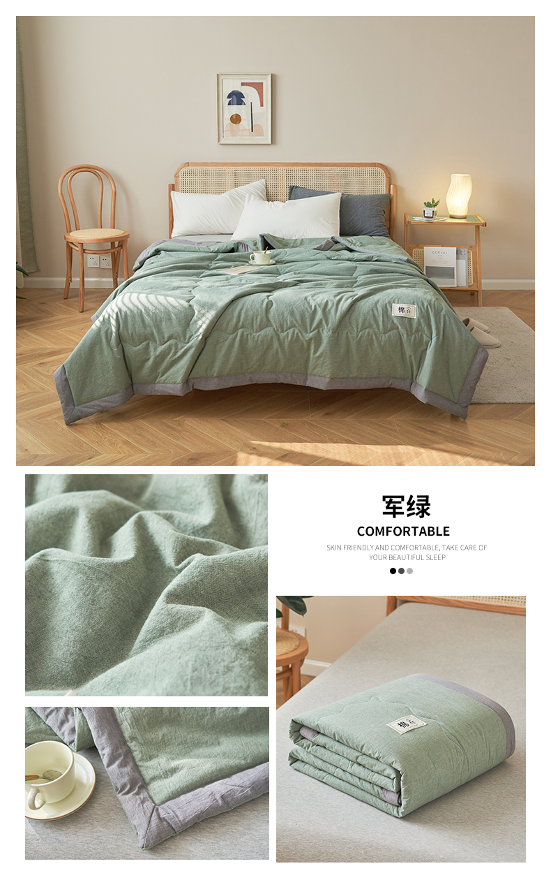 商品名称:金鹰 2025新款A类纯棉水洗棉色织棉花夏被全棉空调被夏凉被 轻奢蓝